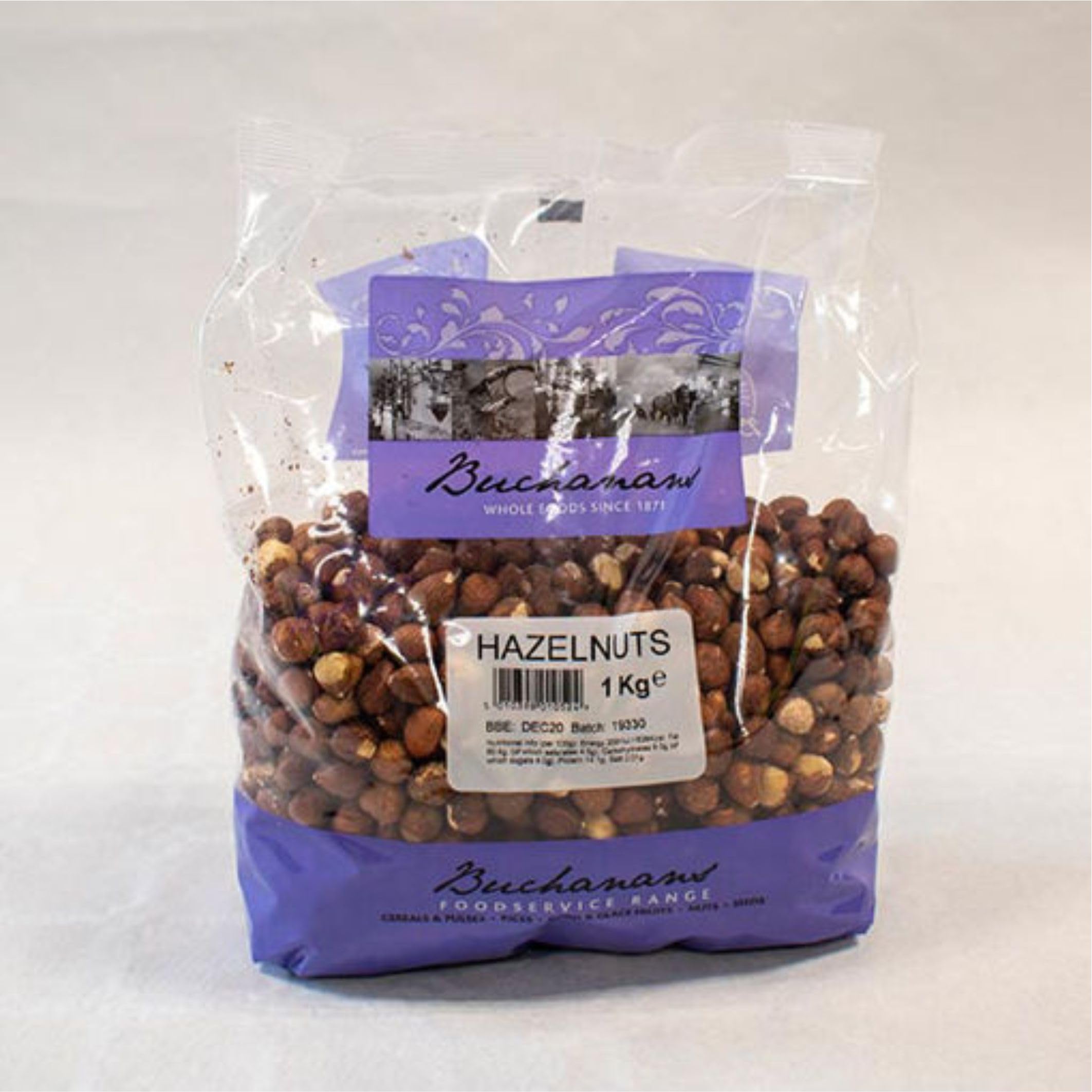 BUCHANANS HAZELNUTS Whole hazelnuts. Typical brownish colour with the chacteristic flavour and aroma of hazelnuts.Firm and crispy texture free from oily, rubbery soft nuts. Ingredients HAZELNUTS Suitability Vegetarian suitable: Yes Vegan suitable: Yes Lactose intolerance suitable: Yes Coeliacs suitable: Yes Hfss product: null Allergens Contains peanuts: May Contain Contains tree nuts: Yes Contains almond nuts: May Contain Contains hazelnut nuts: Yes Contains walnut nuts: May Contain Contains cashew nuts: May Contain Contains pecan nuts: May Contain Contains brazil nuts: May Contain Contains pistachio nuts: May Contain Contains macadamia nuts: May Contain