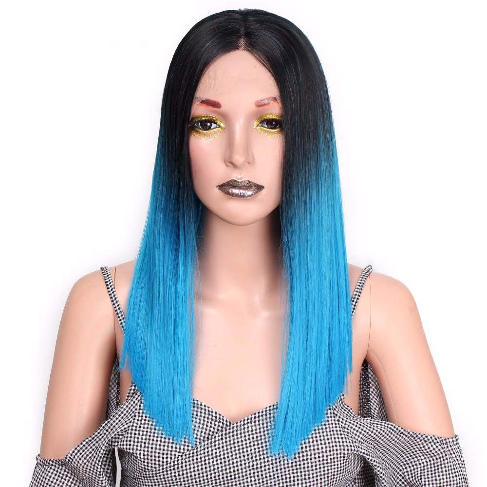 HBINGBING Blue Straight Long 20 Inches Synthetic Lace Front Wig For Black Or White Women Heat Resistant Fiber