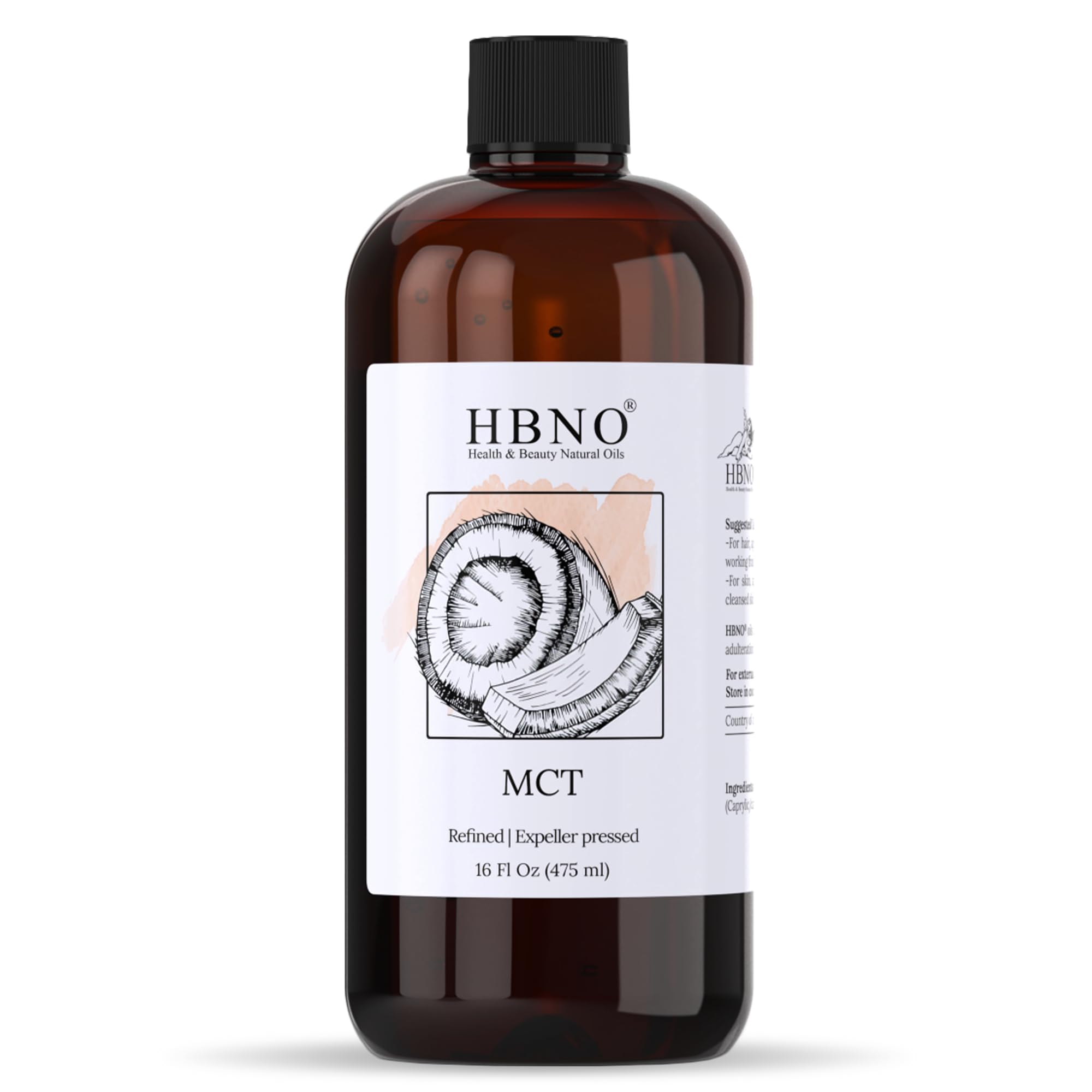 HBNO California Bottled Coconut Mct Oil 16 fl oz (475ml) Value Size - Natural Mct Oil Cold Pressed - Perfect Carrier for Massage Aromatherapy - Ideal for Face Body Lips & Hair 16 Fl Oz (Pack of 1)