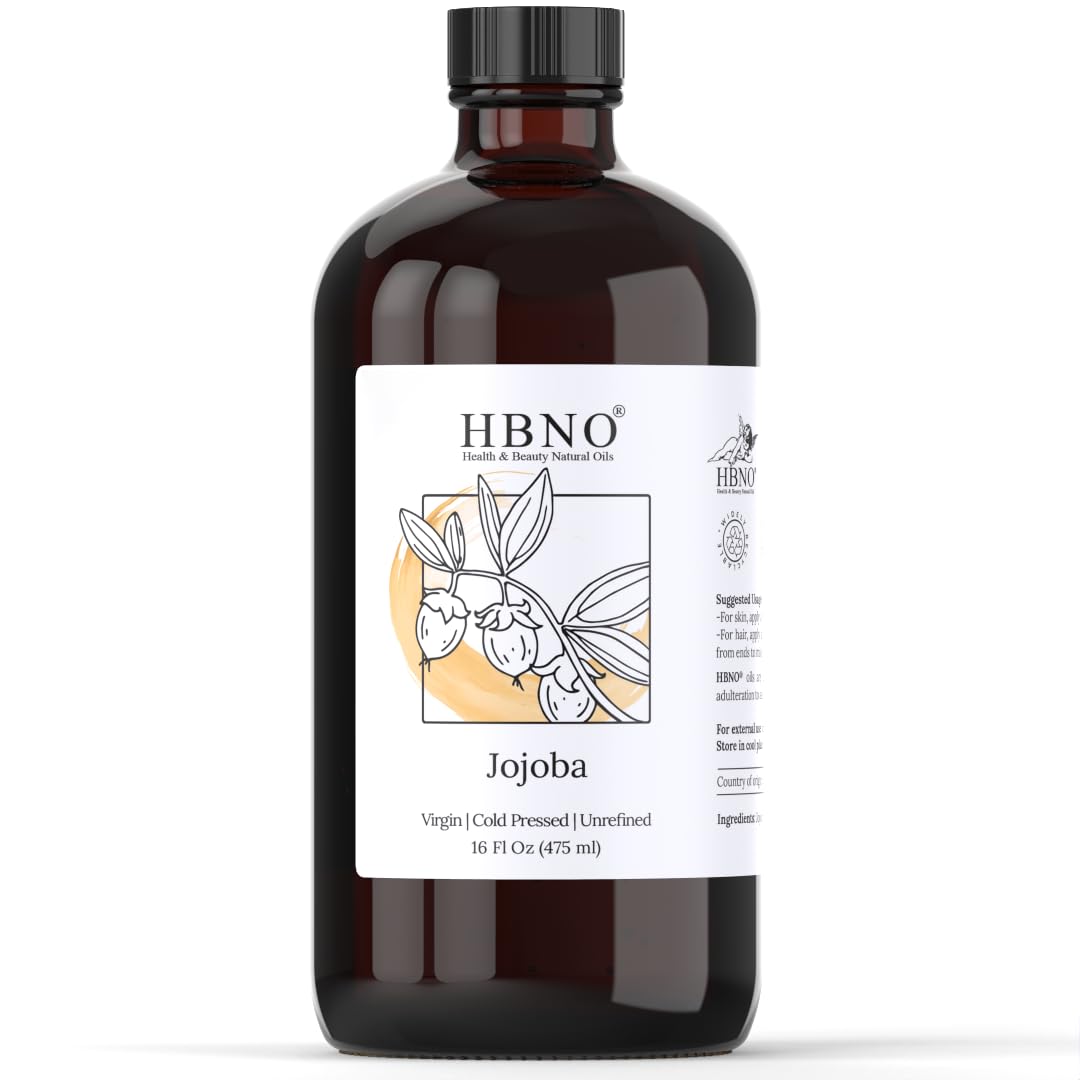 HBNO Jojoba Oil - 16 oz (475ml) Value Size - Ideal for Shampoos Conditioners Massage Blends Face wash Lotions and Skin Care Products (Glass Bottle)