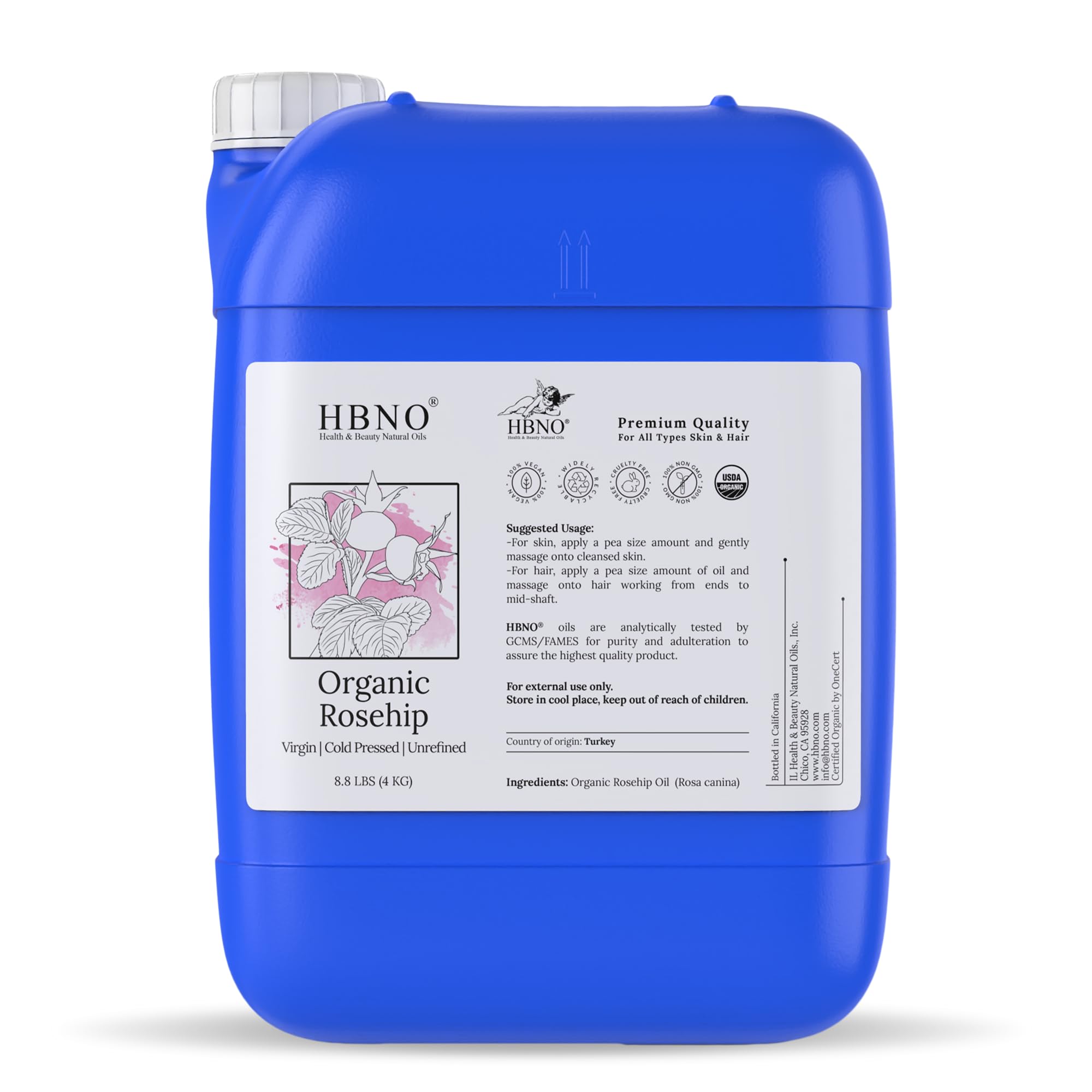 HBNO Organic rosehip oil- 8.8 lbs (4kg) - Ideal for Shampoos Conditioners Lip balms Face wash Lotions and Skin care products.