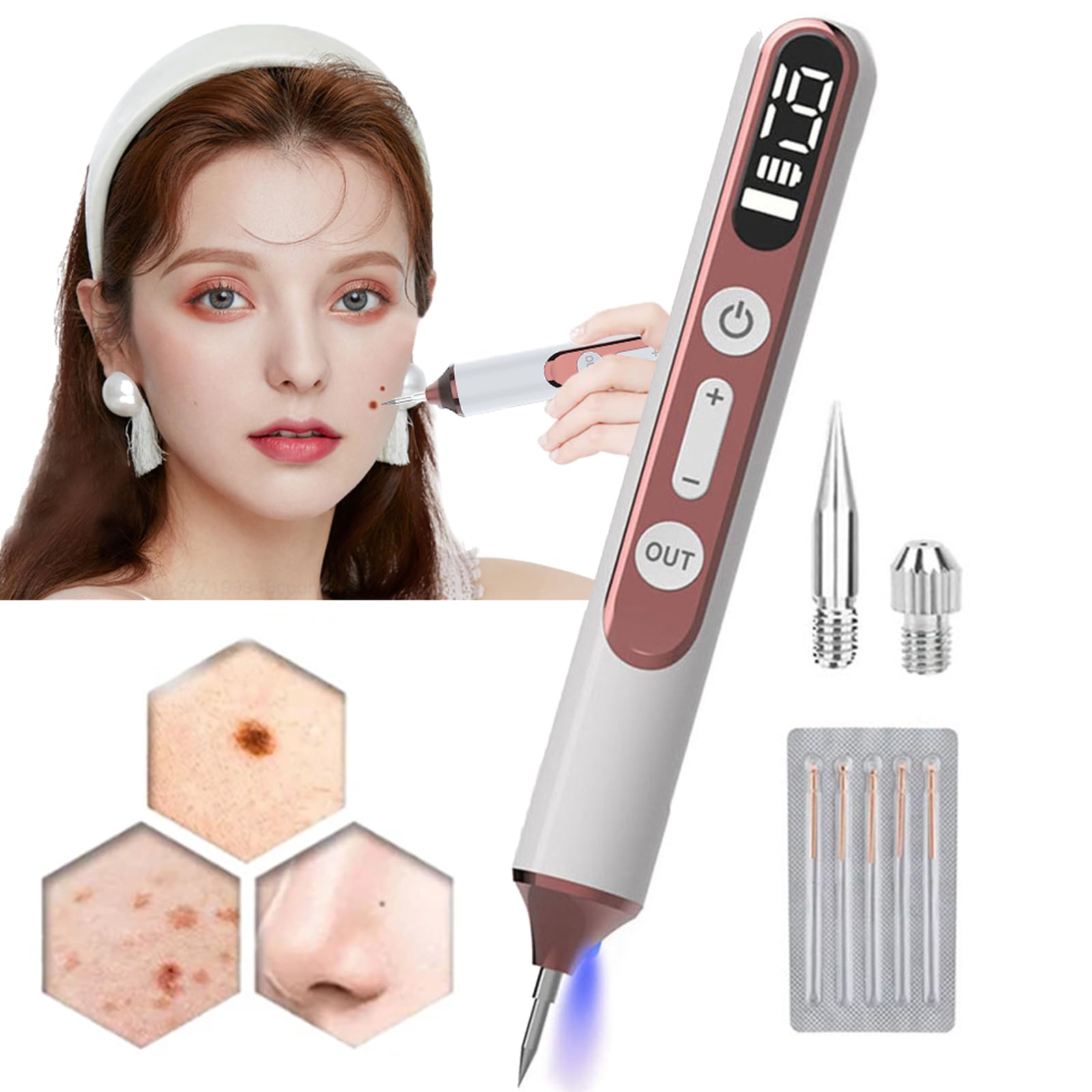 Features: 1. Using ionized carbonization technology, it safely and painlessly removes moles and blemishes without side effects or rebound, leaving your skin smooth and clear. 2. With 19 adjustable levels, it effectively removes moles and blemishes of various sizes, providing precise control over different moles and a wide range of applications to meet your various needs. 3. Quickly and safely removes moles, blemishes, warts, tattoos, fatty deposits, scabs, granulations, etc., without scarring, skin damage, or bleeding. 4. Equipped with spotlights, it allows for precise location of the mole, even in a dark environment, for optimal results. Suitable for home use. Specifications: Speed: 19 speeds Lighting: Projector, blue Input voltage: 5V Output power: 9W Power interface: Type-C Charging time: Approximately one hour Battery capacity: 600mAh Battery type: Lithium battery Contents: 1 x Spot Removal Tool Notes: 1. Please allow for a 1-20mm error due to manual measurement. 2. Due to differences in screen and lighting, the product color may be slightly different from the pictures. INSTRUCTIONS FOR USE Instructions for use: 1. Clean the area to be treated. 2. Select the appropriate needle according to the size of the spot or mole. 3. Adjust the intensity according to the depth and size of the spot or mole. 4. Place the needle on the area to be treated and activate the device. 5. Keep the device in place for 10 to 15 minutes. 6. Clean the treated area with soap and water. 7. If the spot or mole persists or worsens, consult a dermatologist.EASY TO USE Use the mole removal pen and achieve better results at home in just 10-15 minutes. The mole removal pen features an LED screen that displays the battery level and gear position during use. Feel free to click "Add to Cart" to purchase this excellent quality product! EFFECTS AND APPLICATIONS Skin beauty, common warts, senile warts, flat warts, molluscum contagiosum, warty birthmarks, white birthmarks, calluses, freckles, fades local imperfections, improves skin condition. TWO TYPES OF REPLACEABLE NEEDLES It is suitable for different sizes of moles and spots. Fine needle for freckles, spots, and other small pigmented tattoos on the skin coarse needle for large warts, skin tags, and nevi. 19 INTENSITY LEVELS The mole removal pen has 19 intensity levels designed to address problems of varying depths and areas. Level 1-6: for small spots, moles, and freckles Level 7-12: removes medium-sized warts and plaques Level 13-19: for large warts, skin tags, and tattoos. PLASMA PEN PRINCIPLE Using unique electric ionic technology, it can remove moles, warts, spots, freckles, and skin tags without harming normal skin, bleeding, or causing pain. The light helps you use the device easily and speeds up your skin's recovery.Stylo Plasma Laser - 19 Niveaux D'Intensité Et LumièRe Led, Stylo Anti-Taches CutanéEs, Stylo Anti-Grains De Beauté Pour Le Visage Et Le Corps, Avec Aiguille RemplaçAble, Sans Danger Pour La PeauDESCRIPTION DU PRODUIT DESCRIPTION DU PRODUIT Caractéristiques : 1. Grâce à la technologie de carbonisation ionisée, il élimine les grains de beauté et les taches de manière sûre et indolore, sans effets secondaires ni rebond, laissant votre peau lisse et nette. 2. 19 niveaux de réglage, élimination efficace des grains de beauté et des taches de différentes tailles, contrôle précis des différents grains de beauté, large gamme d'applications pour répondre à vos différents besoins. 3. Élimine rapidement et en toute sécurité les grains de beauté, les taches, les verrues, les tatouages, les amas graisseux, les croûtes, les granulations, etc., sans cicatrices, lésions cutanées ni saignements. 4. Équipé de spots lumineux, il permet de localiser précisément le grain de beauté, même dans un environnement sombre, pour un meilleur résultat. Convient à un usage domestique. Spécifications : Vitesse : 19 vitesses Éclairage : Projecteur, bleu Tension d'entrée : 5 V Puissance de sortie : 9 W Interface d'alimentation : Type C Temps de charge : environ une heure Capacité de la batterie : 600 mAh Nom de la batterie : Batterie au lithium Contenu : 1 x Outil de suppression de points Remarques : 1. Veuillez prévoir une marge d'erreur de 1 à 20 mm en raison de la mesure manuelle. 2. En raison des différences dues à l'écran et à la lumière, la couleur du produit peut être légèrement différente de celle des photos. MODE D'EMPLOI Instructions d'utilisation : 1. Nettoyez la zone à traiter. 2. Sélectionnez l'aiguille appropriée en fonction de la taille de la tache ou du grain de beauté. 3. Réglez l'intensité appropriée en fonction de la profondeur et de la taille de la tache ou du grain de beauté. 4. Placez l'aiguille sur la zone à traiter et activez l'appareil. 5. Maintenez l'appareil en place pendant 10 à 15 minutes. 6. Nettoyez la zone traitée avec de l'eau et du savon. 7. Si la tache ou le grain de beauté persiste ou s'aggrave, consultez un dermatologue.FACILE À UTILISER Utilisez le stylo anti-grains de beauté et obtenez de meilleurs résultats à domicile en seulement 10 à 15 minutes. Le stylo anti-grains de beauté est équipé d'un écran LED qui vous indique le niveau de batterie et la position de l'engrenage pendant l'utilisation. N'hésitez pas à cliquer sur « Ajouter au panier » pour acheter ce produit d'excellente qualité !. EFFETS ET APPLICATIONS Beauté de la peau, verrues ordinaires, verrues séniles, verrues plates, molluscum contagiosum, taches de naissance verruqueuses, taches de naissance blanches, callosités, taches de rousseur, estompe les imperfections locales, améliore l'état de la peau. DEUX TYPES D'AIGUILLES REMPLAÇABLES Il convient à différentes tailles de naevus et de taches. Aiguille fine pour les taches de rousseur, les taches et autres petits tatouages pigmentés sur l'épiderme cutané Aiguille grossière pour les grosses verrues, charnues et naevus. 19 INTENSITÉ Le stylo d'él