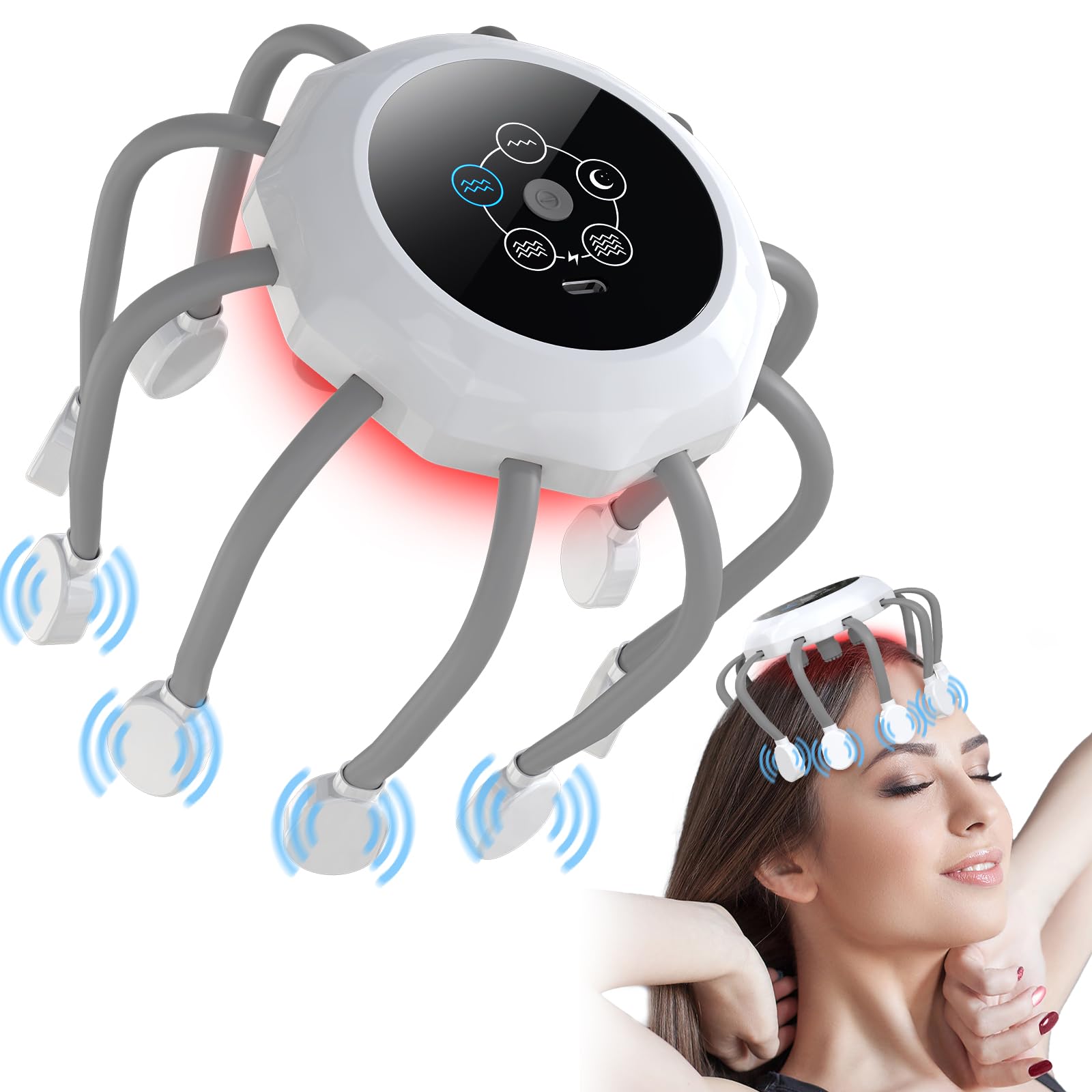 Package and service: Here is the packaging list: 1*Head Scalp, 1*USB cable, 1*Premium packaging box.We have 7*24h customer service team can provide 60days money back service and life time care service.Large battery capacity & 5 massage mode: built-in 1200 mAh battery, long battery life, it only takes two hours to be fully charged, you can use 5-7 days after full load.It has five massage modes (vitality/soothing/leisure/beauty/sleep mode).Each mode is programmed with a certain massage intensity and type of massage to meet all your needs.Low noise & bluetooth connection: The electrical massage device for head accepts the latest noise reduction technology, you can enjoy quiet massage or with your favorite music.Here is the process to connect Bluetooth: Open your phone Bluetooth, look for the scalp massager (the name is Chinese), then connect it to your phone, then you can enjoy.Unique red light therapy: headache equipped with red light, red light can promote blood circulation and regulate the biological clock and promote the secretion of melatonin so that you get deep relaxation and be able to have better sleep after use.In additional experimental studies show that red light can strengthen hair and promote hair growth.Complete coverage: Head Massage with a 10-frequency of vibrating contacts, offers 360-degree massage cover, suitable for all head sizes, you can enjoy a free-handed massage.It helps to alleviate fatigue, relieve headaches, reduce stress and relax muscles.Paket und Service: Hier ist die Verpackungsliste: 1*Kopf Scalp, 1*USB Kabel, 1*premium Verpackung Box. Wir haben 7*24H Kundendienstteam kann 60days Geld zurück Service und LEBENZEIT Pflege Service zur Verfügung stellen. Große Batteriekapazität & 5 Massagemodus: Eingebaute 1200 mAh Batterie, lange Akkulaufzeit, es dauert nur zwei Stunden, um vollständig aufgeladen zu werden, können Sie 5-7 Tage nach voller Ladung verwenden. Es verfügt über fünf Massagemodi (Vitalität/Beruhigend/Freizeit/Schönheit/Schlafmodus). Jeder Modus ist mit einer bestimmten Massageintensität und Massageart programmiert, um alle Ihre Bedürfnisse zu erfüllen. Geräuscharme & Bluetooth-Verbindung: Die elektrisches massagegerät für kopf nehmen Sie neueste Geräuschreduktionstechnologie an, können Sie ruhige Massage oder mit Ihrer Lieblingsmusik genießen. Hier ist der Prozess, um Bluetooth zu verbinden: Öffnen Sie Ihr Telefon Bluetooth, suchen Sie das Kopfhautmassagegerät (der Name ist chinesisch), dann verbinden Sie es mit Ihrem Telefon, dann können Sie genießen. Einzigartige Rotlichttherapie: Kopfschmerzen ausgestattet mit rotem Licht, kann rotes Licht die Durchblutung fördern und die biologische Uhr regulieren und die Sekretion von Melatonin fördern, so dass Sie tiefe Entspannung erhalten und in der Lage sein, nach der Verwendung besseren Schlaf zu haben. In zusätzlichen experimentellen Studien zeigen, dass rotes Licht das Haar stärken und das Haarwachstum fördern kann. Vollständige Abdeckung: Kopf massage mit 10-Frequenz vibrierenden Kontakten, bietet 360-Grad-Massageabdeckung, geeignet für alle Kopfgrößen, können Sie eine freihändige Massage genießen. Es hilft Müdigkeit zu lindern, Kopfschmerzen zu lindern, Stress abzubauen und Muskeln zu entspannen.Kopfmassage Spinne Elektrische mit Rotes Licht, Bluetooth 10 Kontakte Vibration 5 Modi Kopfmassagegerät zur Linderung von Kopfschmerzen Stress und Tiefschlaf