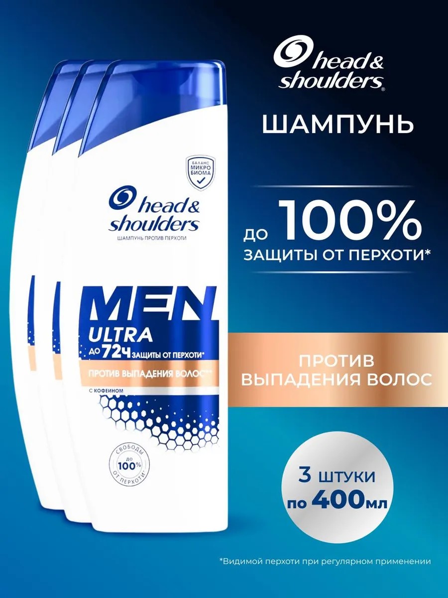 | Полное наименование товара | Шампунь против перхоти и бальзам для мужчин Head and Shoulders Men Ultra Против выпадения волос с кофеином 400 мл - 3 шт |