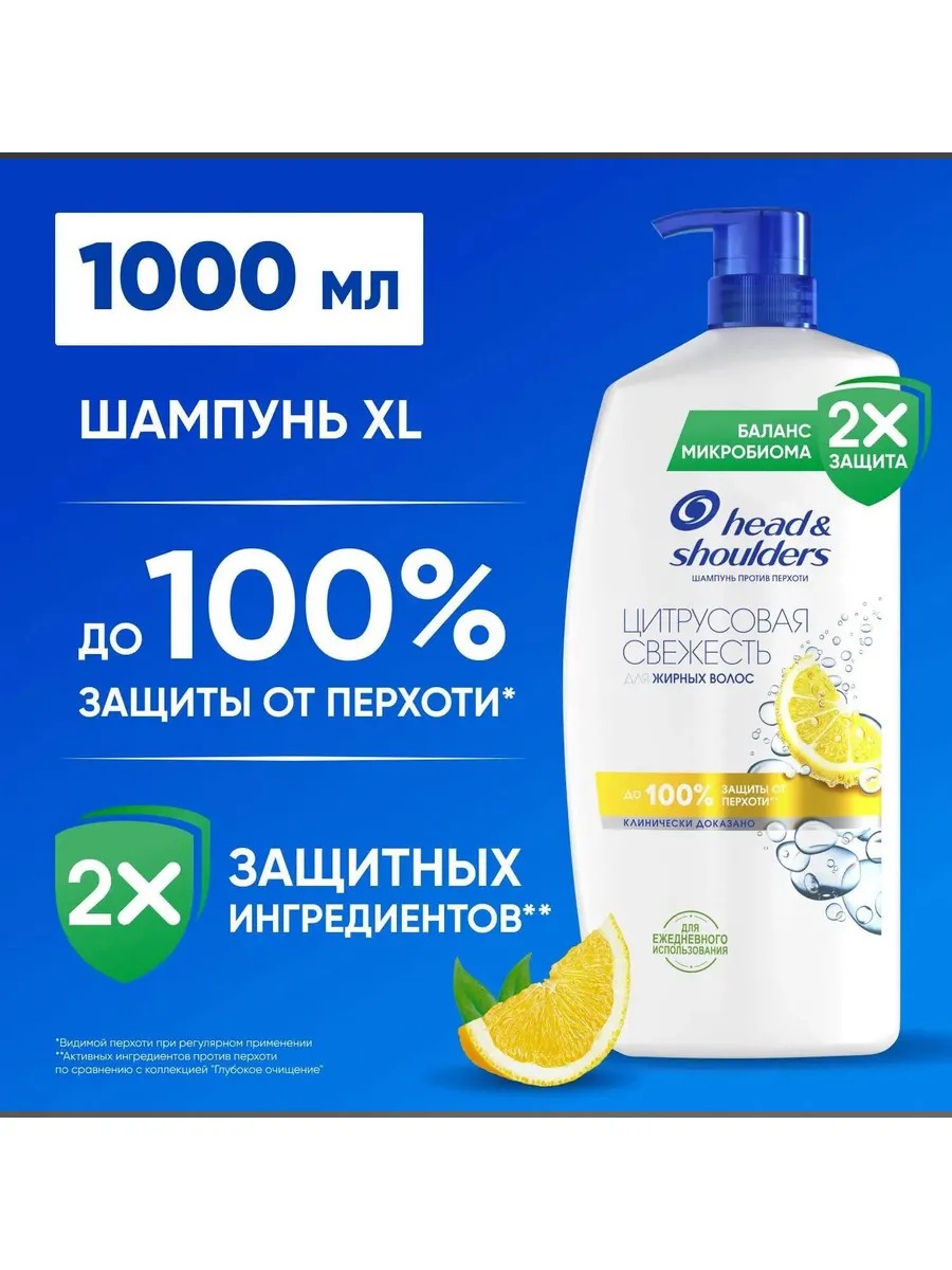 Шампунь против перхоти Head & Shoulders (Хэд энд Шолдерс) со свежим ароматом Цитрусов для жирных волос. Обеспечивает до 100% защиты от перхоти*. Эффективен даже против стойкой перхоти.