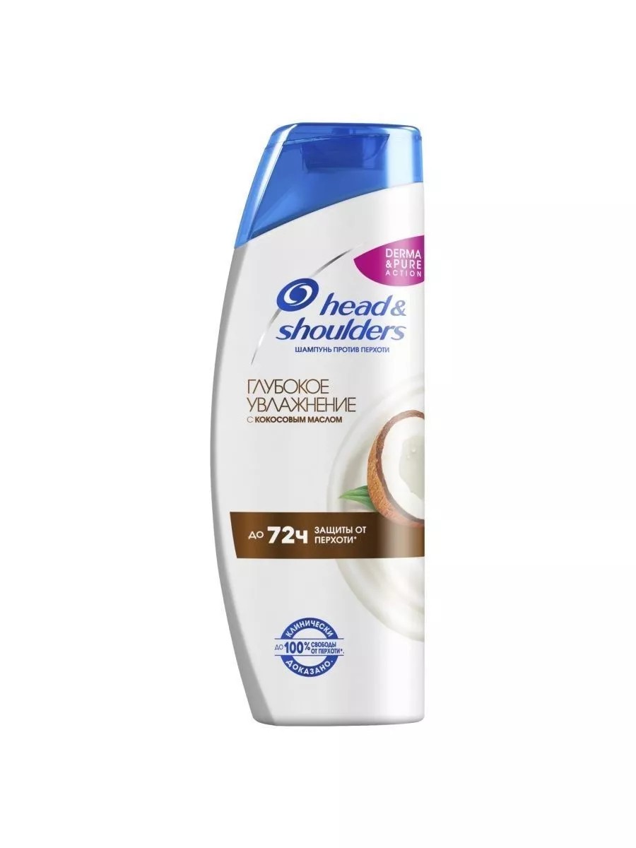 Head & Shoulders Шампунь Глубокое Увлажнение 400 мл.Шампунь против перхоти Head & Shoulders (Хед энд Шолдерс) Глубокое Увлажнение с кокосовым маслом мягко очищает и увлажняет кожу головы и волосы, придавая им великолепный здоровый вид и приятный кокосовый аромат. Благодаря клинически проверенному активному компоненту пироктон оламину шампунь обеспечивает до 100% свободы от перхоти. Его усовершенствованная формула Derma & Pure протестирована дерматологами, pH-сбалансирована, усилена антиоксидантами и не содержит парабенов, фосфатов и парафинов. Head&Shoulders - бренд шампуней 1 в мире, который также заботится о планете: флакон на 40% состоит из переработанного пластика (за исключением крышки и этикетки) и пригоден для переработки. Видимой перхоти при регулярном применении.