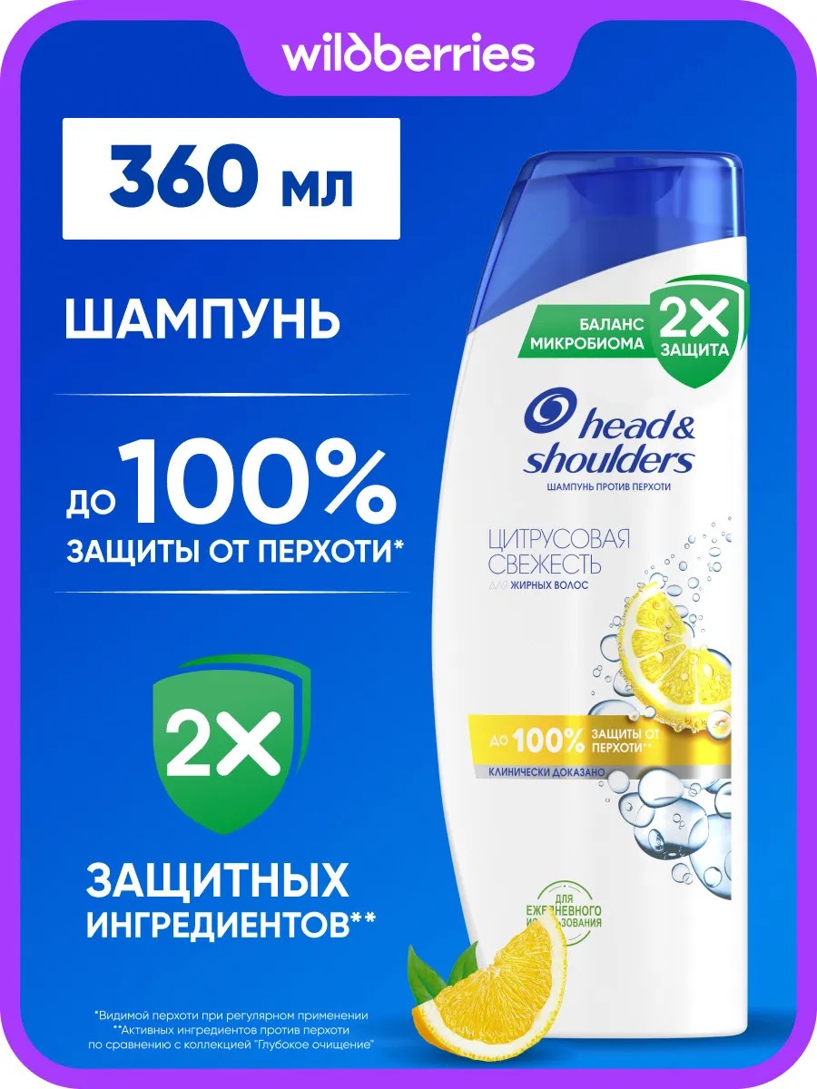Шампунь против перхоти Head & Shoulders (Хэд энд Шолдерс) со свежим ароматом Цитрусов для жирных волос. Обеспечивает до 100% защиты от перхоти*. Эффективен даже против стойкой перхоти.