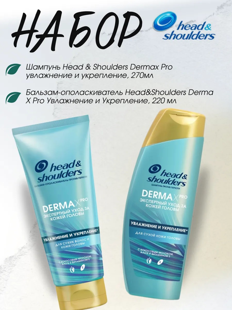 Революция в уходе за кожей головы! Экспертный трехступенчатый уход для питания сухой кожи головы и волос от Head & Shoulders (Хед энд Шолдерс) – коллекция Derma X Pro. Использование бальзама-ополаскивателя Derma X Pro от Head&Shoulders усиливает защиту от сухости и перхоти. Шампунь и бальзам-ополаскиватель воздействуют в синергии для максимального питания и восстановления кожи головы и волос. Формула бальзама содержит ухаживающие и увлажняющие ингредиенты для ухода за кожей головы и волосами: кокосовое молоко, алоэ и витамин Е.