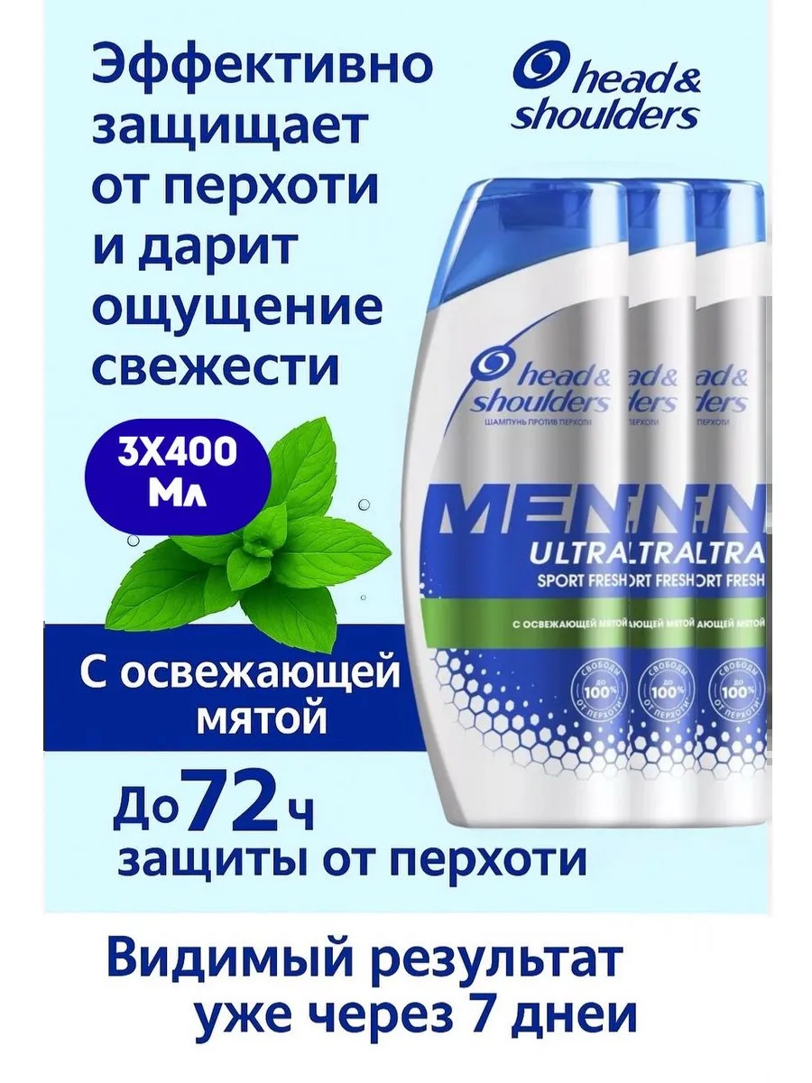 Head & Shoulders MEN ULTRA Shampoo with refreshing mint is an effective hair and scalp care product for men, providing up to 72 hours of dandruff protection and a long-lasting feeling of freshness.