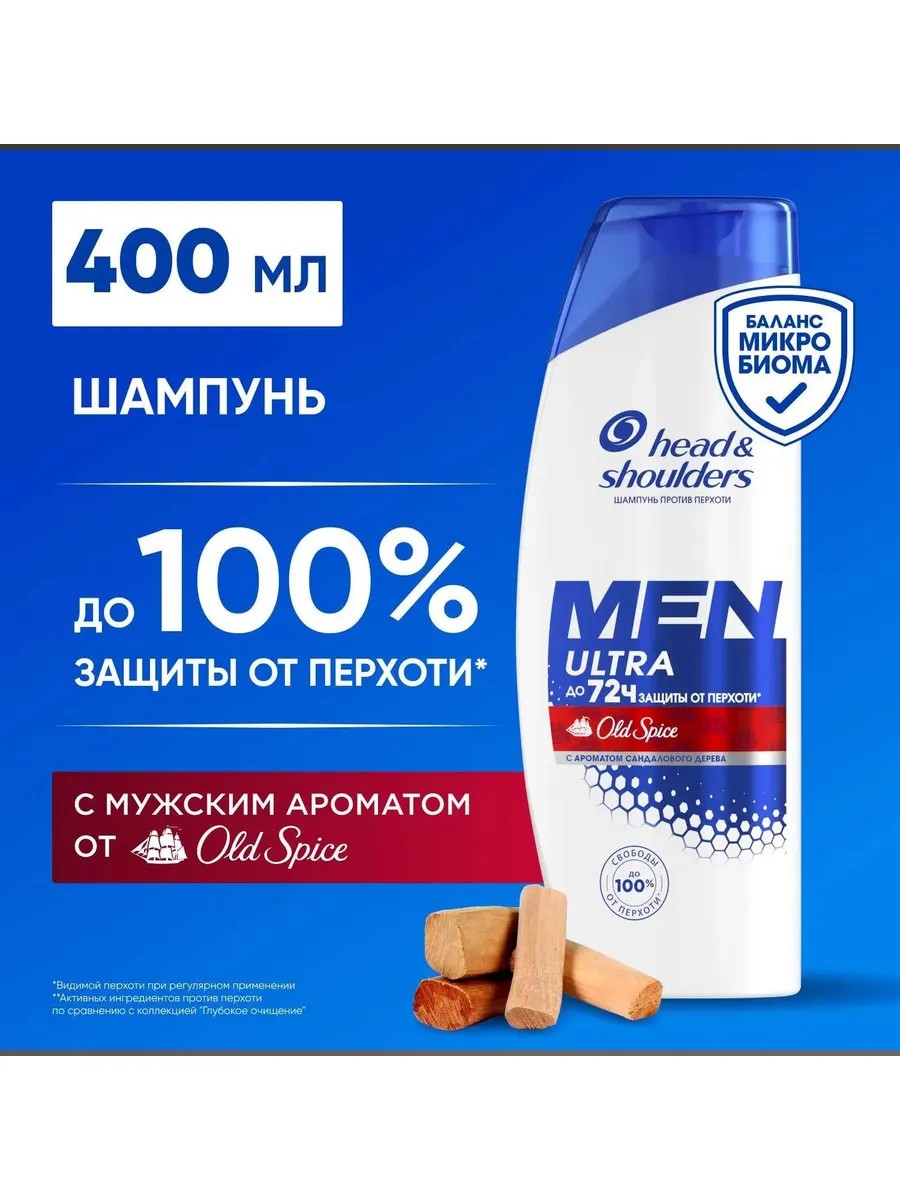 Шампунь против перхоти и бальзам для мужчин Head & Shoulders (Хэд энд Шолдерс) Men Ultra Old Spice с экстрактом сандалового дерева ухаживает за волосами и кожей головы, полностью оправдывая ожидания даже самых требовательных мужчин. Он эффективно очищает кожу головы и волосы, придавая им приятный насыщенный аромат сандала и обеспечивая защиту от шелушения, зуда и сухости на срок до 72 часов*. Эффективен даже против стойкой перхоти.