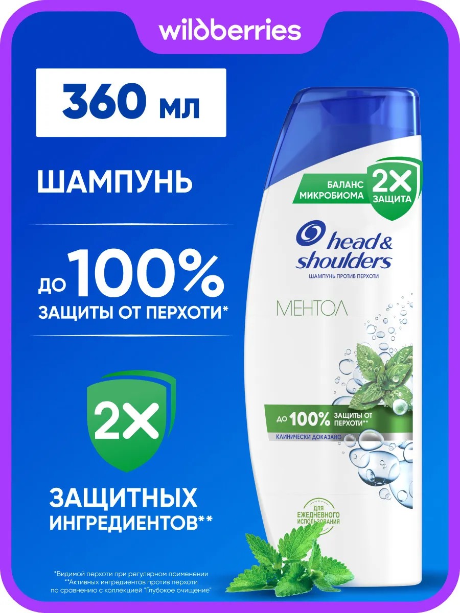 Шампунь против перхоти Head & Shoulders (Хэд энд Шолдерс) со свежим ароматом Ментола подходит для всех типов волос и кожи головы. Обеспечивает до 100% защиты от перхоти*. Эффективен даже против стойкой перхоти.