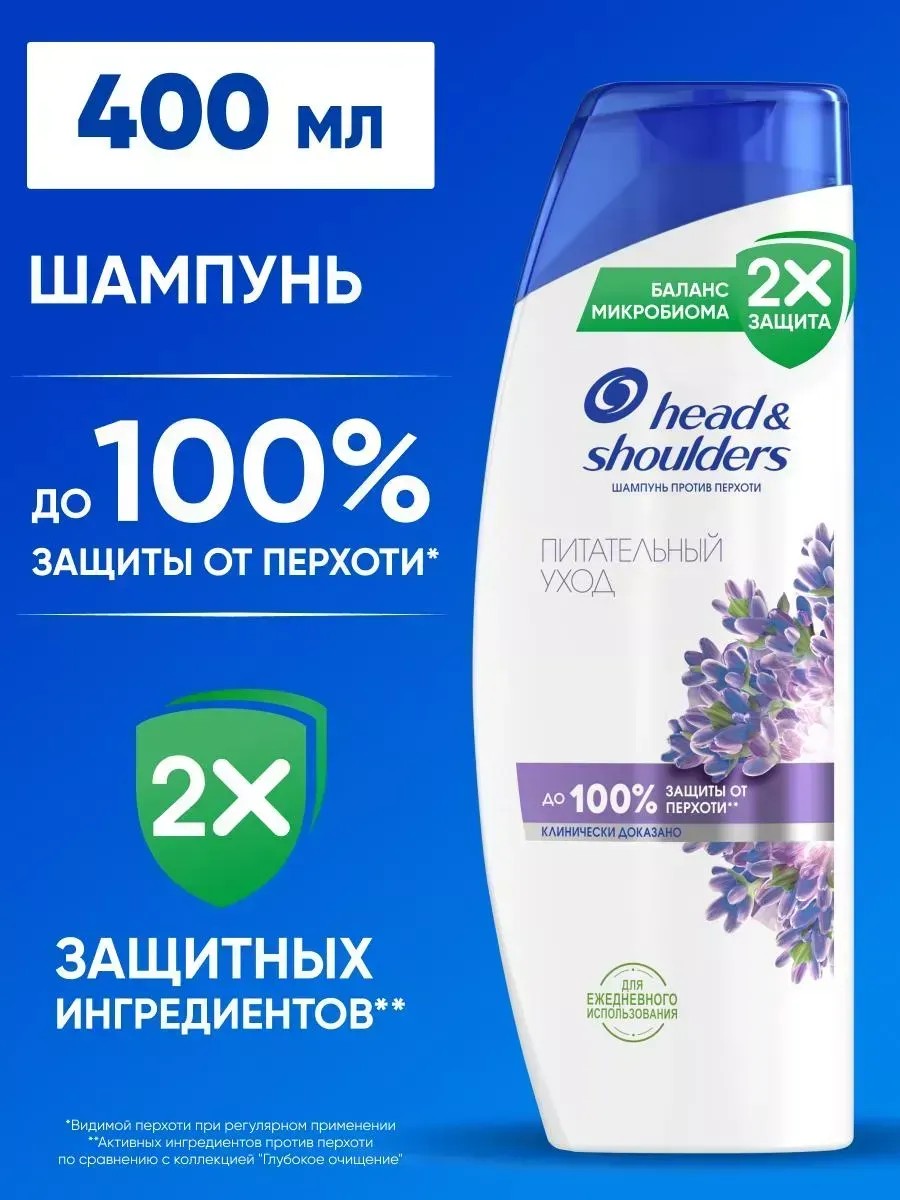Шампунь против перхоти Head & Shoulders (Хэд энд Шолдерс) Питательный уход с экстрактом лаванды бережно ухаживает за волосами и кожей головы. Он эффективно очищает и глубоко питает кожу головы и волосы, придавая им приятный аромат и великолепный вид. Обеспечивает до 100% защиты от перхоти*. Эффективен даже против стойкой перхоти. Обновленная формула с активным ингредиентом Пироктон Оламином удаляет как видимую, так и невидимую перхоть, доставляя в поры в 2Х больше защитных ингредиентов. Клинически проверенная и дерматологически протестированная pH-сбалансированная формула делает волосы и кожу головы чистыми и свежими. Шампунь для женщин для ежедневного использования с формулой Баланса микробиома устраняет основную причину возникновения перхоти и поддерживает сбалансированный микробиом кожи головы. Увлажняющий шампунь для волос уменьшает проблемы и увлажняет кожу головы, избавляя волосы и кожу от перхоти. Для оптимального результата использовать при каждом мытье головы. Способ применения: Нанесите шампунь на волосы. Вспеньте, затем смойте водой. Шампунь подходит для сухой кожи головы и жирной кожи головы. *видимая перхоть, при регулярном использовании