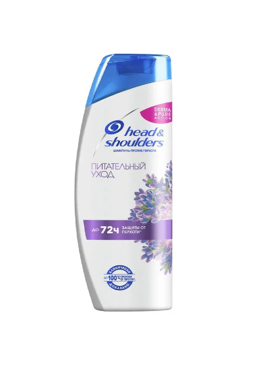 Head&Shoulders, Шампунь против перхоти Питательный уход, 400мл, 1 шт. Шампунь против перхоти Питательный уход с лавандой очищает волосы и глубоко питает волосы и кожу головы. Высокоэффективная формула Derma&Pure борется с зудом, жирной и сухой кожей головы, предотвращая появление перхоти. Формула шампуня Питательный уход прекрасно питает волосы и кожу головы, обеспечивая до 100% свободы от перхоти (видимые чешуйки, при регулярном использовании). Способ применения: для ежедневного использования. Хорошо встряхните перед использованием. Нанесите на кожу головы и по всей длине волос аккуратными массирующими движениями. Смойте и при желании повторите. Избегайте контакта с глазами. При попадании в глаза тщательно промойте их водой.