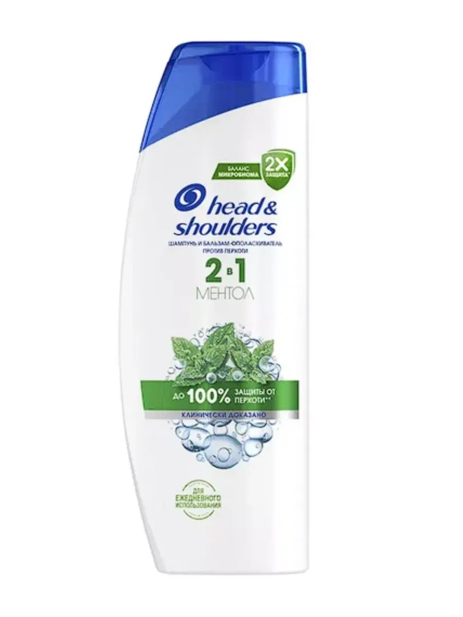 Head & Shoulders, Шампунь 2 в 1 против перхоти Ментол, 360 мл. Шампунь против перхоти Head & Shoulders (Хэд энд Шолдерс) со свежим ароматом Ментола подходит для всех типов волос и кожи головы. Обеспечивает до 100% защиты от перхоти. Эффективен даже против стойкой перхоти. Обновленная формула с активным ингредиентом Пироктон Оламином удаляет как видимую, так и невидимую перхоть, доставляя в поры в 2Х больше защитных ингредиентов. Клинически проверенная и дерматологически протестированная pH-сбалансированная формула делает волосы и кожу головы чистыми и свежими. Шампунь для мужчин женщин для ежедневного использования с формулой Баланса микробиома устраняет основную причину возникновения перхоти и поддерживает сбалансированный микробиом кожи головы. Формула шампуня и бальзама для волос 2в1 содержит на 25% больше ухаживающих компонентов в сравнении с обычным шампунем Head & Shoulders. Увлажняющий шампунь для волос уменьшает проблемы и увлажняет кожу головы, избавляя волосы и кожу от перхоти. Для оптимального результата использовать при каждом мытье головы.