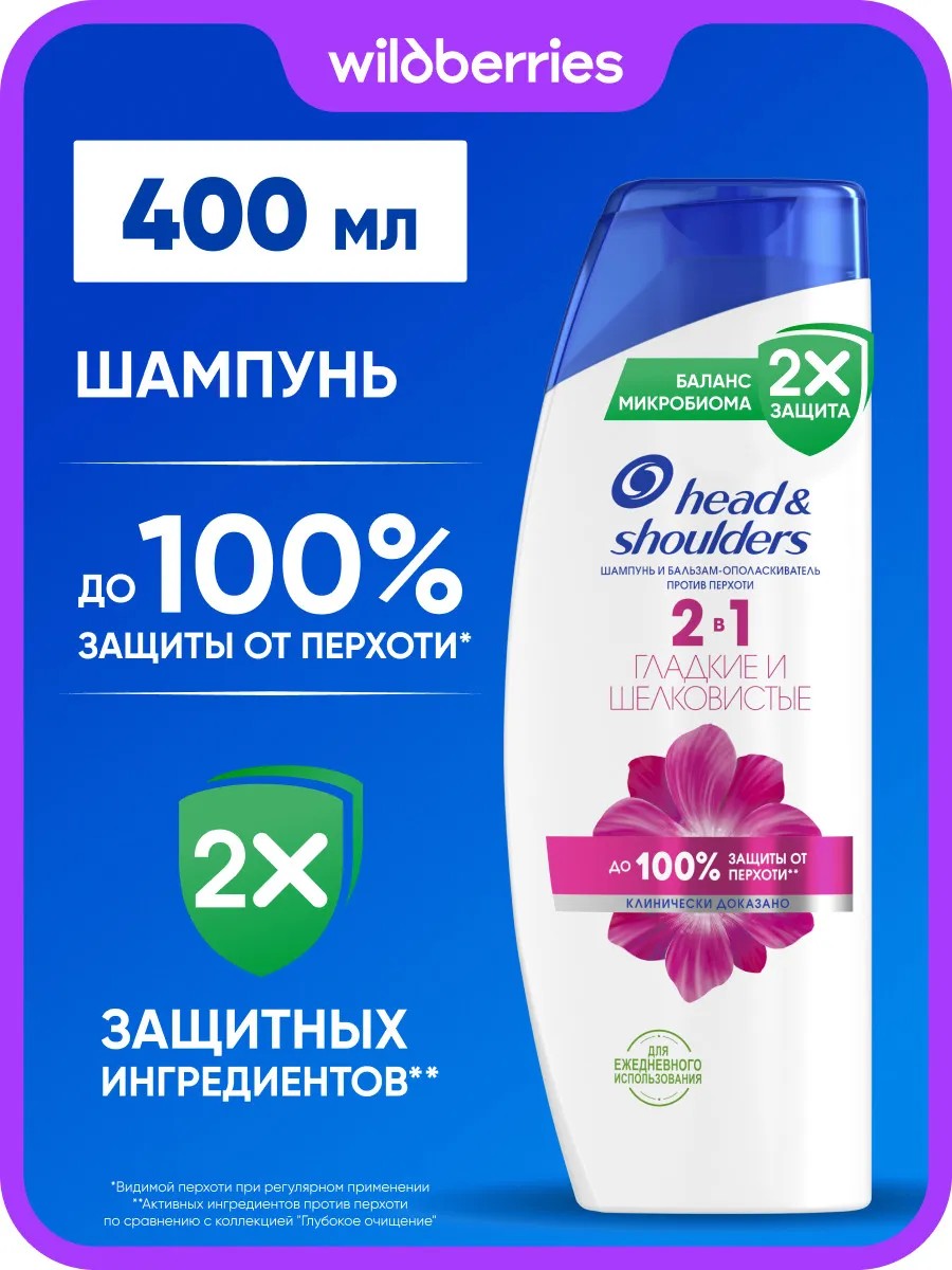 Шампунь против перхоти и бальзам для волос 2в1 Head & Shoulders (Хэд энд Шолдерс) Гладкие и Шелковистые подходит для сухой кожи головы. Обеспечивает до 100% защиты от перхоти*. Эффективен даже против стойкой перхоти.