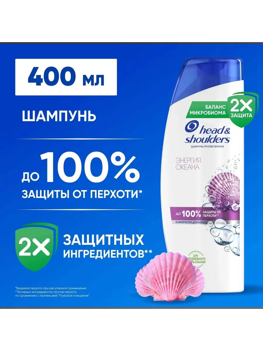 Шампунь против перхоти Head & Shoulders (Хэд энд Шолдерс) Энергия океана подходит для всех типов волос и кожи головы. Обеспечивает до 100% защиты от перхоти*. Эффективен даже против стойкой перхоти.