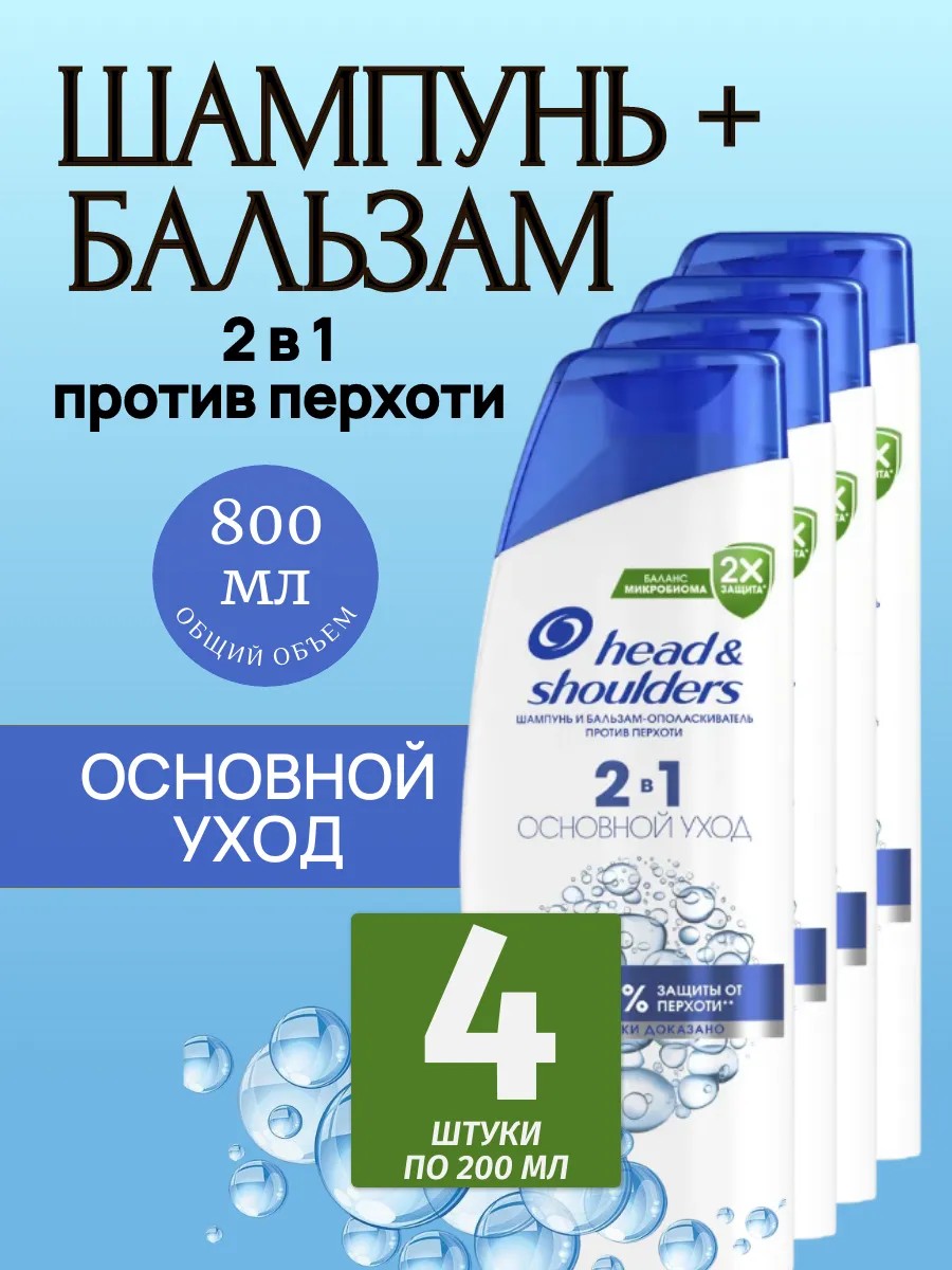 Head&shoulders Шампунь и бальзам 2в1 "Основной Уход" 200мл / 4 шт.