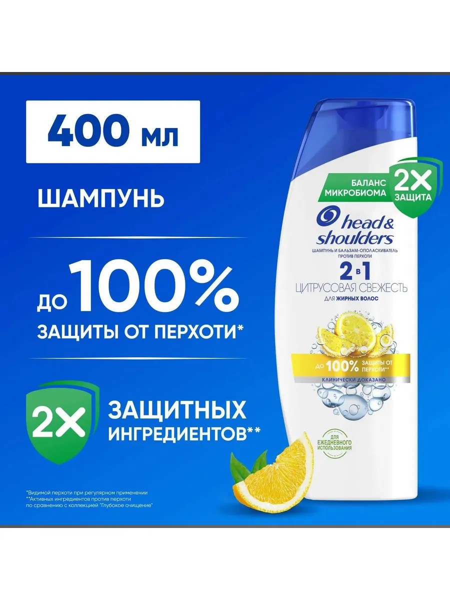 Head&Shoulders Шампунь против перхоти Цитрусовая свежесть 2в1 для жирных волос 400мл.