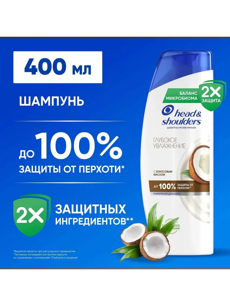 Шампунь против перхоти Head & Shoulders (Хэд энд Шолдерс) Глубокое увлажнение с кокосовым маслом подходит для сухой кожи головы. Обеспечивает до 100% защиты от перхоти*. Эффективен даже против стойкой перхоти.