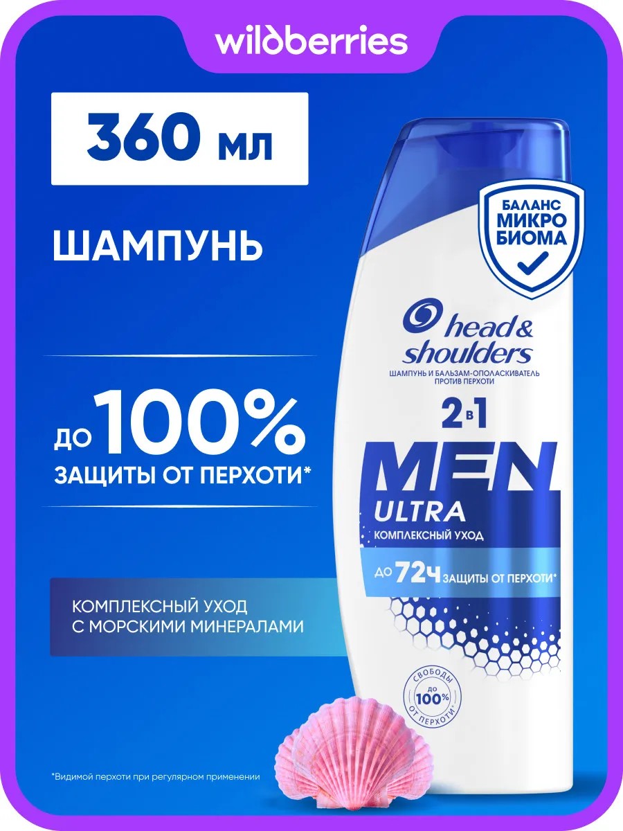 Шампунь против перхоти и бальзам для мужчин Head & Shoulders (Хэд энд Шолдерс) Men Ultra Комплексный уход подходит для всех типов волос и кожи головы. Обеспечивает до 100% защиты от перхоти*. Эффективен даже против стойкой перхоти.