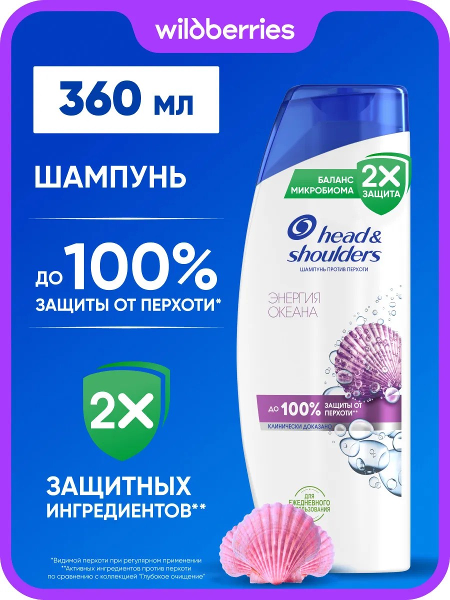 Шампунь против перхоти Head & Shoulders (Хэд энд Шолдерс) Энергия океана подходит для всех типов волос и кожи головы. Обеспечивает до 100% защиты от перхоти*. Эффективен даже против стойкой перхоти.