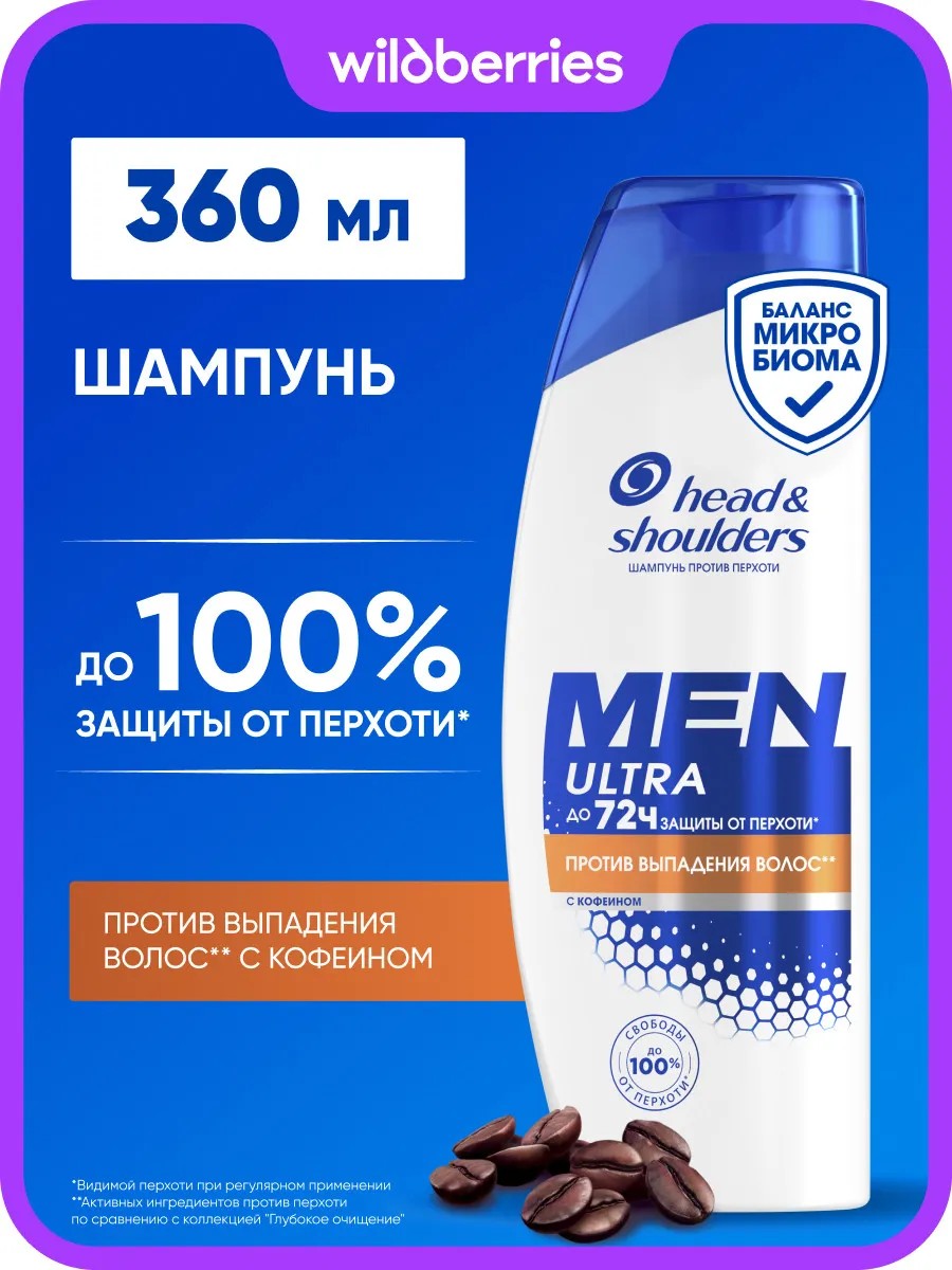 Шампунь против перхоти и бальзам для мужчин Head & Shoulders (Хэд энд Шолдерс) Men Ultra Против выпадения волос с кофеином ухаживает за волосами и кожей головы, полностью оправдывая ожидания даже самых требовательных мужчин. Это средство от перхоти очищает кожу головы и волосы, а также способствует укреплению волос, уменьшая их выпадение из-за перхоти и ломкости. Эффективен даже против стойкой перхоти.