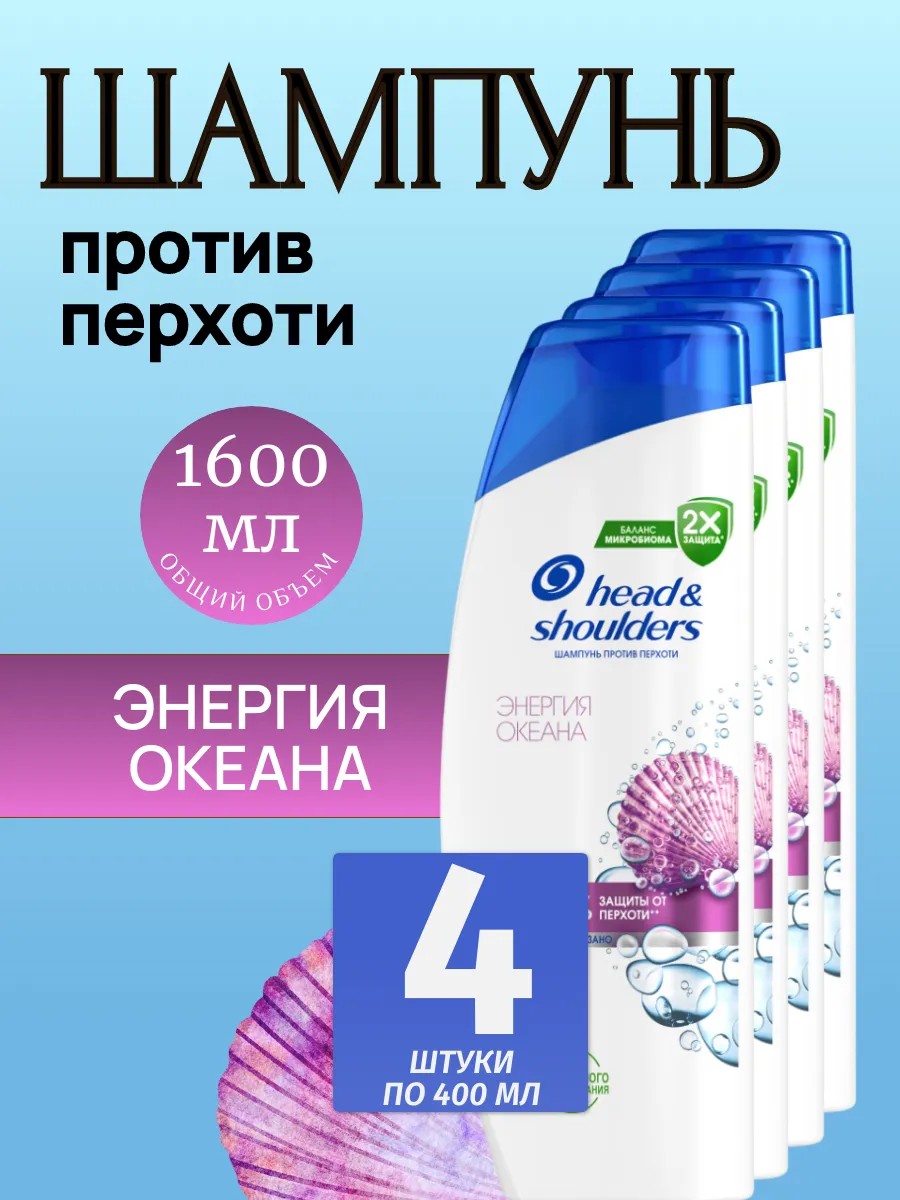 Шампунь против перхоти Head&Shoulders Энергия Океана 400 мл. Шампунь против перхоти Head & Shoulders (Хед энд Шолдерс) Энергия Океана эффективно очищает кожу головы и волосы, увлажняя их и придавая им ощущение свежести. Шампунь содержит активные действующие вещества — пиритион цинка и карбонат цинка — благодаря которым он обеспечивает до 100% свободы от перхоти*. Доказано клинически. Его усовершенствованная формула Derma & Pure протестирована дерматологами, pH-сбалансирована, усилена антиоксидантами и не содержит парабенов, фосфатов и парафинов. *Видимой перхоти при регулярном применении.