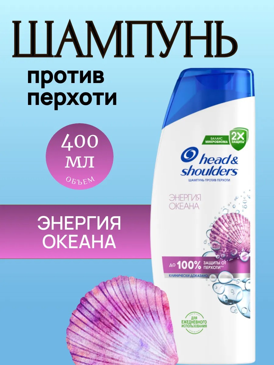 Шампунь против перхоти Head&Shoulders Энергия Океана 400 мл. Шампунь против перхоти Head & Shoulders (Хед энд Шолдерс) Энергия Океана эффективно очищает кожу головы и волосы, увлажняя их и придавая им ощущение свежести. Шампунь содержит активные действующие вещества — пиритион цинка и карбонат цинка — благодаря которым он обеспечивает до 100% свободы от перхоти*. Доказано клинически. Его усовершенствованная формула Derma & Pure протестирована дерматологами, pH-сбалансирована, усилена антиоксидантами и не содержит парабенов, фосфатов и парафинов. *Видимой перхоти при регулярном применении.