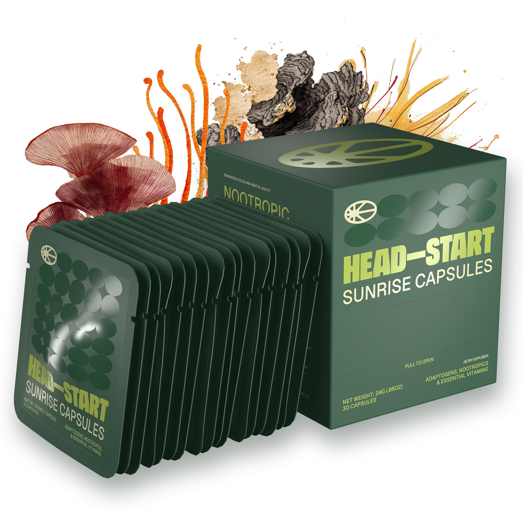 HEAD-START Sunrise Capsules | Nootropic Brain Supplement with Lion s Mane, L-Theanine & Saffron | Adaptogen Blend for Focus, Energy, Clarity & Daily Performance 1