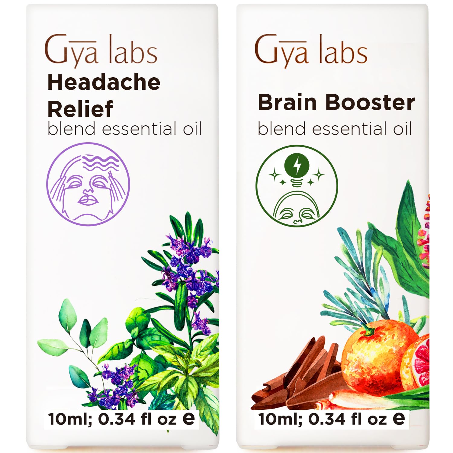 Headache Essential Oil Blend & Brain Booster Essential Oil Blend Set - Aromatherapy Grade Essential Oils Set - 2x0.34 fl oz