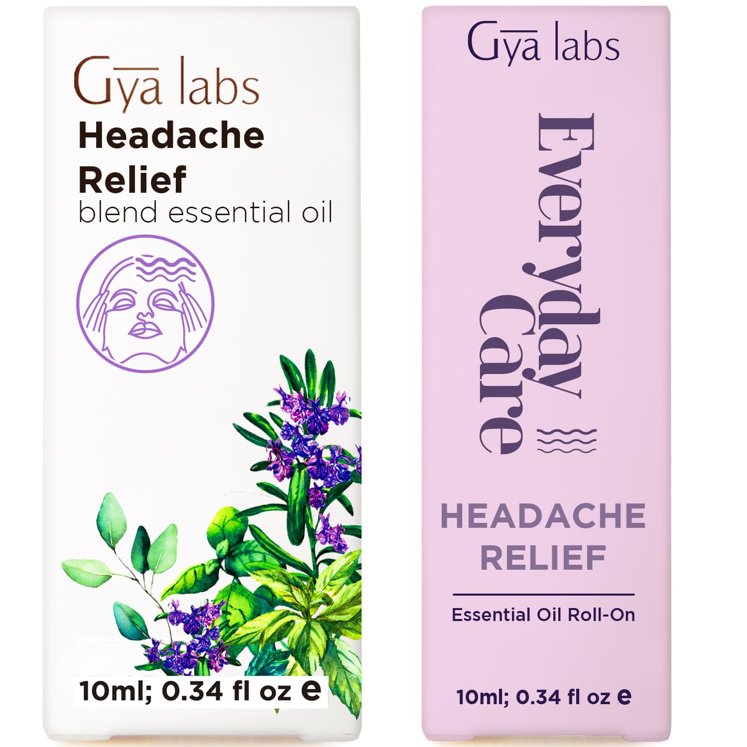 Headache Essential Oil Blend & Headache Essential Oil Roll On Set - Aromatherapy Grade Essential Oils Set - 2x0.34 fl oz - Gya Labs