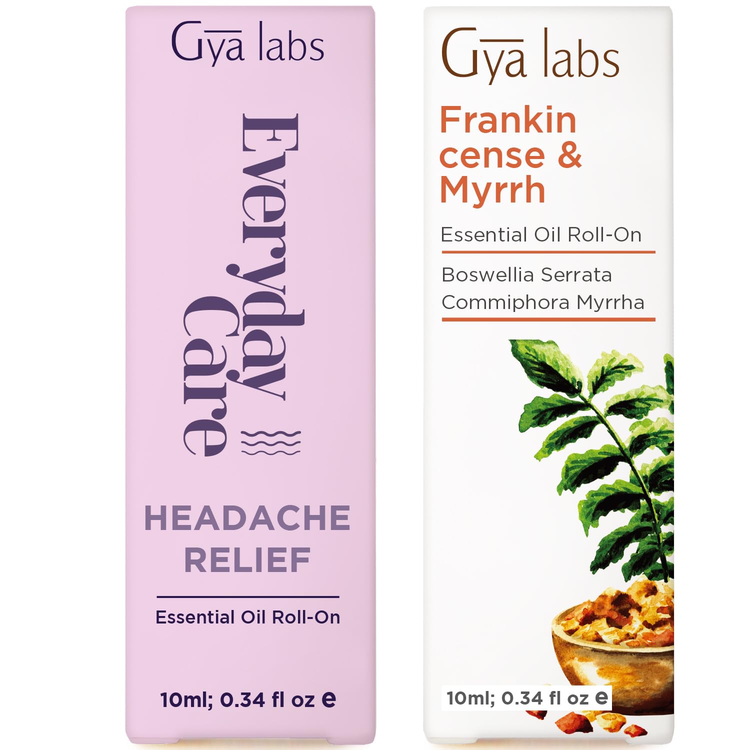 Headache Relief & Frankincense Myrrh Roll On Set - Essential Oils Aromatherapy Roll On with Essential Oil Set - 2x0.34 fl oz - Gya Labs