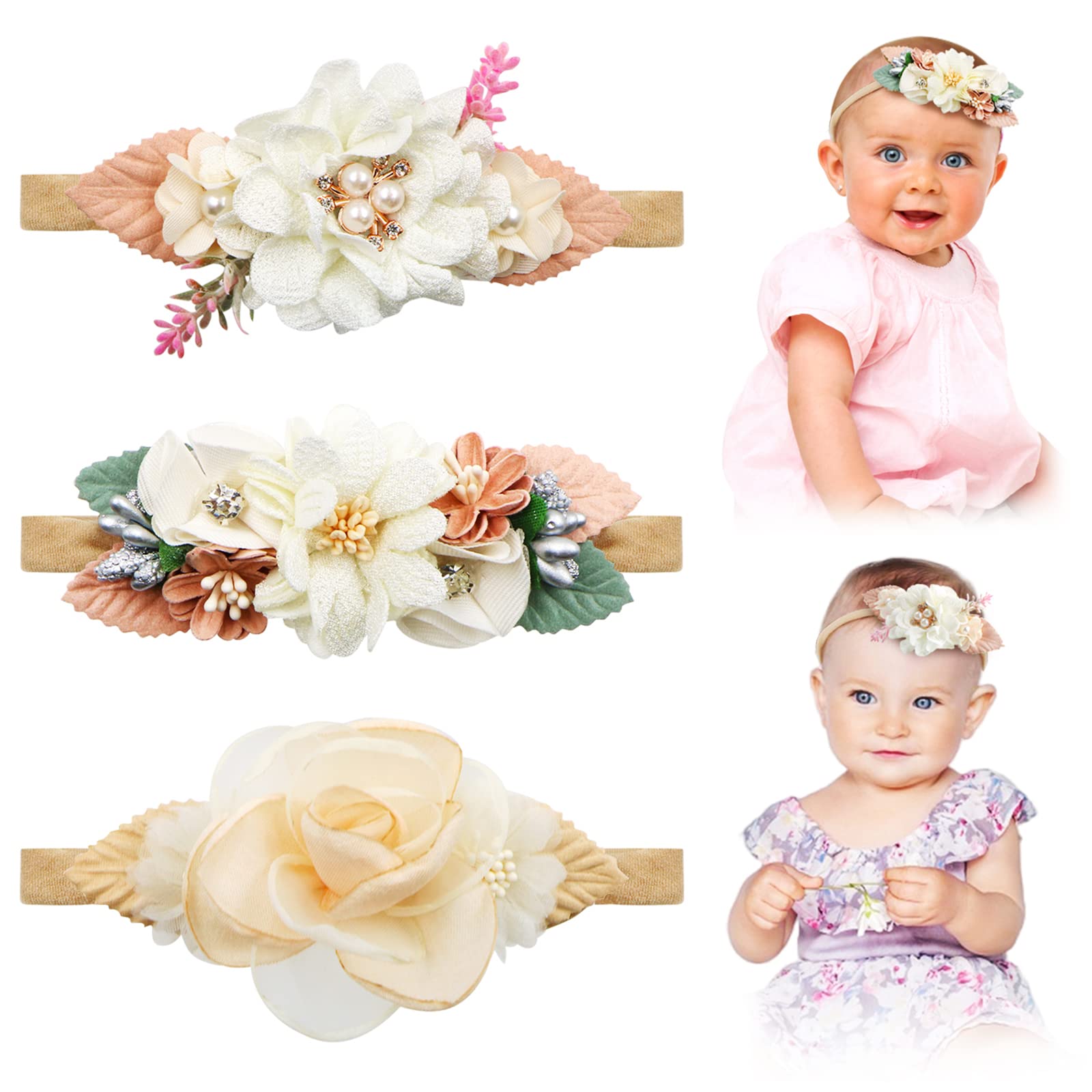 ?? ?Suitable for every occasion? pack contains 3 different headband for baby girls that can be combined with different outfits, it is the most beautiful decoration.Perfect for baby showers, birthday parties, family photo shoots, new baby gifts, Christmas and more.?? ?Accessories for newborn photography? Our cute and beautiful, stylish and unique flower stirrings are the perfect hair accessories for newborn photo shoots to capture the most beautiful moments of your baby, a perfect and special gift for friends and family that are pregnant or a familyPlan photo shoot.?? ?Unique design? Baby girl flower headband children consists of pretty and cute flowers with fabric woven leaves, pearls and rhinestones.Handmade, beautiful and realistic, durable and reusable.?? ?Stretable size? The elastic flower hair band baby girl for toddlers has a scale of 4.33 inches and can easily be stretched to approx. 11-12 inches, which makes it ideal for children aged 0-6 years.Excellent elasticity, easy to stretch, comfortable to wear and fits well to leave the baby's head without slipping or leaving traces.?? ?Skin-friendly material? headband baby girl for girls is made of soft and comfortable, extremely elastic, safe and skin-friendly nylon material, baby hair band with cotton pads on the inside, comfortable, without feeling of binding, the delicate skin and head of theProtect babies.???Geeignet für jede Gelegenheit?Packung enthält 3 verschiedene stirnband für baby mädchen, die mit verschiedenen Outfits kombiniert werden können, es ist die schönste Dekoration. Perfekt für Baby-Duschen, Geburtstagsfeiern, Familienfotoshootings, neue Baby-Geschenke, Weihnachten und mehr. ???Zubehör für die Neugeborenenfotografie?Unsere niedlichen und schönen, stilvollen und einzigartigen Blumenstirnbänder sind der perfekte Haarschmuck für Neugeborenen-Fotoshootings, um die schönsten Momente Ihres Babys festzuhalten, ein perfektes und besonderes Geschenk für Freunde und Familie, die schwanger sind oder ein Familien-Fotoshooting planen. ???Einzigartiges Design?Baby mädchen blume stirnband kinder besteht aus hübschen und niedlichen Blumen mit Stoff gewebten Blättern, Perlen und Strasssteinen. Handgemacht, schön und realistisch, langlebig und wiederverwendbar. ???Dehnbare Größe?Das elastische Blumen haarband baby mädchen für Kleinkinder hat einen Umfang von 4,33 Zoll und kann leicht auf ca. 11-12 Zoll gedehnt werden, wodurch es ideal für Kinder im Alter von 0-6 Jahren ist. Hervorragende Elastizität, leicht zu dehnen, angenehm zu tragen und passt gut um den Kopf des Babys, ohne zu verrutschen oder Spuren zu hinterlassen. ???Hautfreundliches Material?Stirnband baby mädchen für Mädchen ist aus weichem und bequemem, extrem elastischem, sicherem und hautfreundlichem Nylonmaterial, Baby-Haarband mit Baumwollpads auf der Innenseite, bequem zu tragen, ohne Gefühl der Bindung, kann die zarte Haut und den Kopf des Babys schützen.