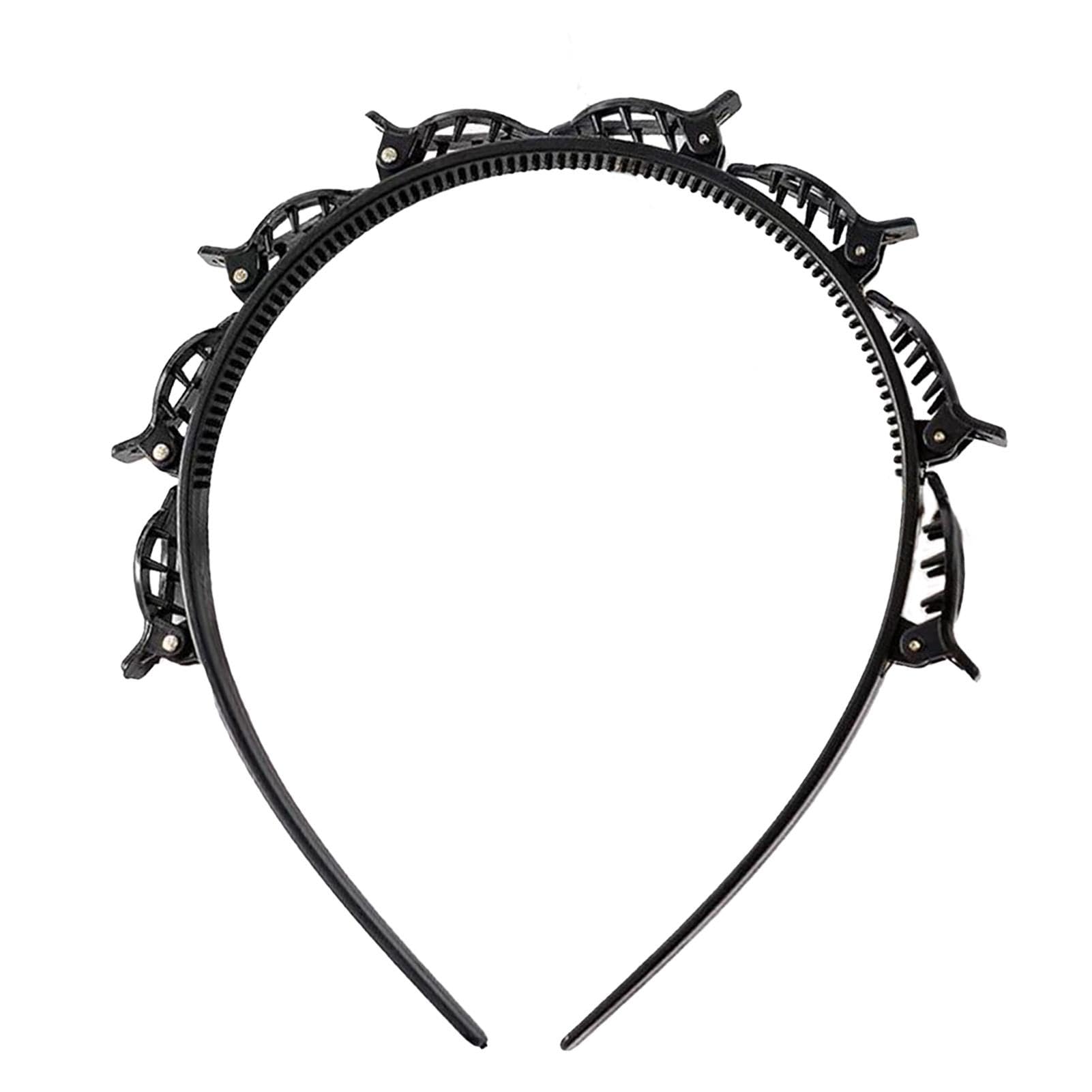 Headband With Clips - Fashion Twist And Clip Headband Toothed Braid Tool Hairband Headband Braid Tool For Styling Bangs Hairstyle Hairpin Professional Weave Bangs Clip Black