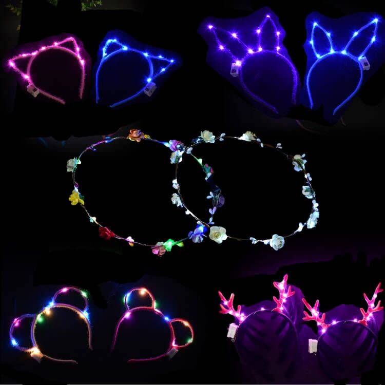 Bright LED Animal Ear Headbands - The beautiful LED floral crown headband perfect for women, girls, boys, girlfriends, bridesmaids or bridesmaids for a night out, costume party, concert, birthday party, wedding, festival, photography, holiday, etc. LED Light Flower Headband - The flower garland headband with LED light is easy to put on and create a new and stunning hairstyle instantly, and the flower wreath has a built-in battery, no extra battery needed, you can just flip the change directly. LED Headband Garland Crown Flowers: Cute headband with animal ears, a lot of miniature LED lights around the headband. The design makes you more attractive and eye-catching in the evening light, creating a new and stunning hairstyle. LED Flower Crown Adjustable - LED floral crown headband with simple design, sweet, romantic and elegant, make you more charming and eye-catching in any occasion. LED Flower Garlands: Made with high quality materials that are strong, safe and durable. First-class material with fine workmanship for comfortable wearing comfort. Delivery in random color choice.