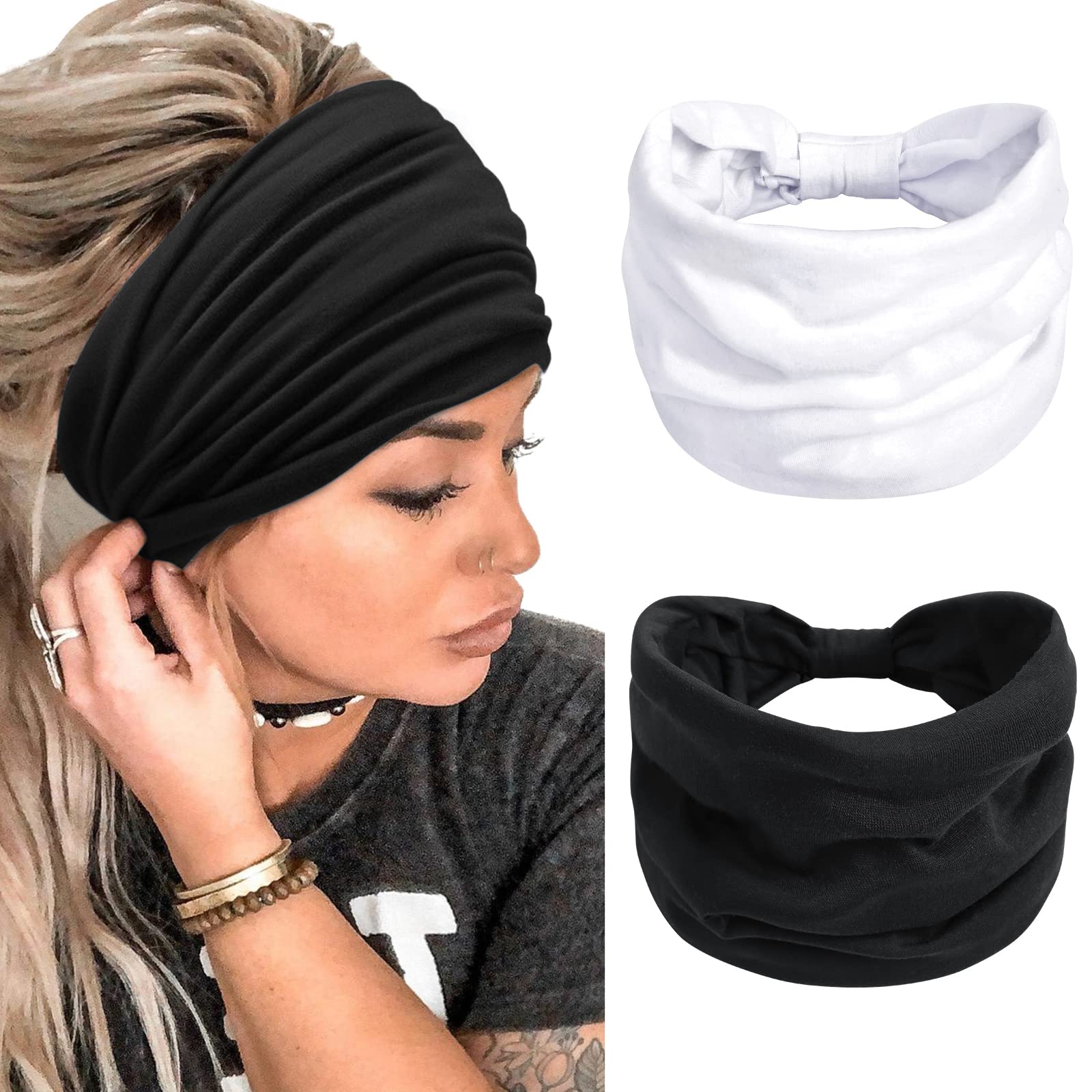 Prefect Gift - They are perfect gifts for your friends, girl friend, mother, daughter, wife etc. If you have any question during purchase or use, please feel free to contact us. We believe that our ladies headbands short and thick hair will be your best gifts. Sweat Absorption & Non Slip - It is incredibly annoying that your hair and sweat fall into your eyes during your sport. Whether you’re doing yoga, running, sports, climbing hills, hiking, cycling ect, it can help you a lot, it can easily keep your hair and sweat away from your eyes. its good elasticity, fast moisture wicking, non-slip design , make your whole exercise process more enjoyable and make you fall in love with sports. Stay Cute & Versatile - Wearing a boho headband when dressing is undoubtedly a big bonus to your appearance. It can beautify the wide forehead, cover the high hairline, better modified the face contour, the face shape and facial features become neat and fashionable, change the spirit of the whole person, make you look cute and charming. Different color hairbands and clothes matching methods will also bring different visual effects. I believe you will love this headband. Upgraded Foldable Extra Wide Headband - After a depth research into the local market, we made the stretchy wide headbands for women that better fit the size of the customer's head. 7.08'' in width, 9.64'' in length. The width is longer than others headband, allow you to make more folds when wearing it, better modify the facial profile. Not just a flat, smooth cloth tightly wrapped around your hair. Hair bands for women fit heads of all sizes and stay in place well. For Women On the Go - Have no time or no idea to make your hair style? Our headbands for women’s hair just in 1 min can do any hairstyles, 9 ways to wear and easy adjustment can greatly help elevate your every day hair style and be more confident when you’re outside with no time to spare!.