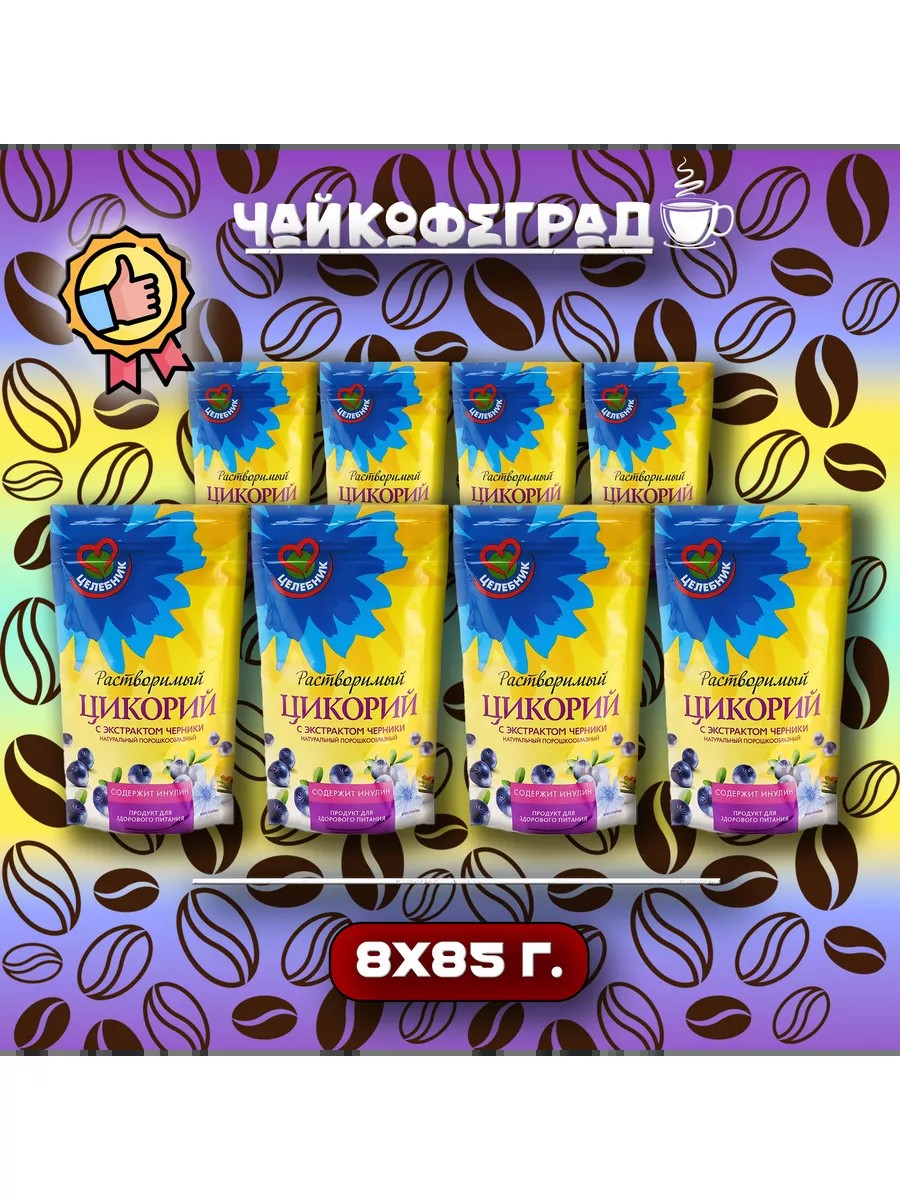 Tselebnik brand chicory with blueberry extract is a product containing blueberry extract, the richest source of antioxidants. SLAVKOFE uses dry extracts obtained by processing fruit, berry, and medicinal plant materials with a high concentration of biologically active substances characteristic of the plants of the same name. Tselebnik chicory with blueberry is not only delicious but also healthy!