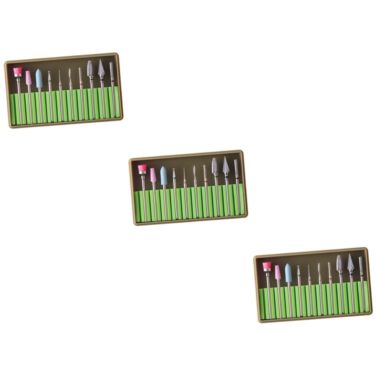 Package Include 3 x Set of Nail Drill Bits Features - Package Size: About 15x7.5x2cm/5.9x2.95x0.78 inch nail drill bits set. - Material: Ceramic, Tungsten Steel nail drill tool. - Color: Green manicure drill bits set. - This kit includes almost all the nail drill tools that you may needed for nail art Nail File Drill Bits Grit. - Suitable for professional manicurist or nail art beginner nail building gel. - and nail grinding head. - You could sharpen, grind, neaten, carve, smoothen, polish and reshape gel and acrylic nails very quickly and efficiently nail drill bits. - Can be used to clean the cuticle area, side walls and also use it for under the nail edge manicure drill bits. Goods Description nail supplies kit Suitable for natural nails as well as artificial nails, great tools for any professional manicurist or beginner.ceramic drill bit This simple but pratical tool set is nice nail drill bits, these drill bits are sturdy enough for your usage.nail tools for nail art The drill bits set are nail art tools that are applicable for nail drill machine