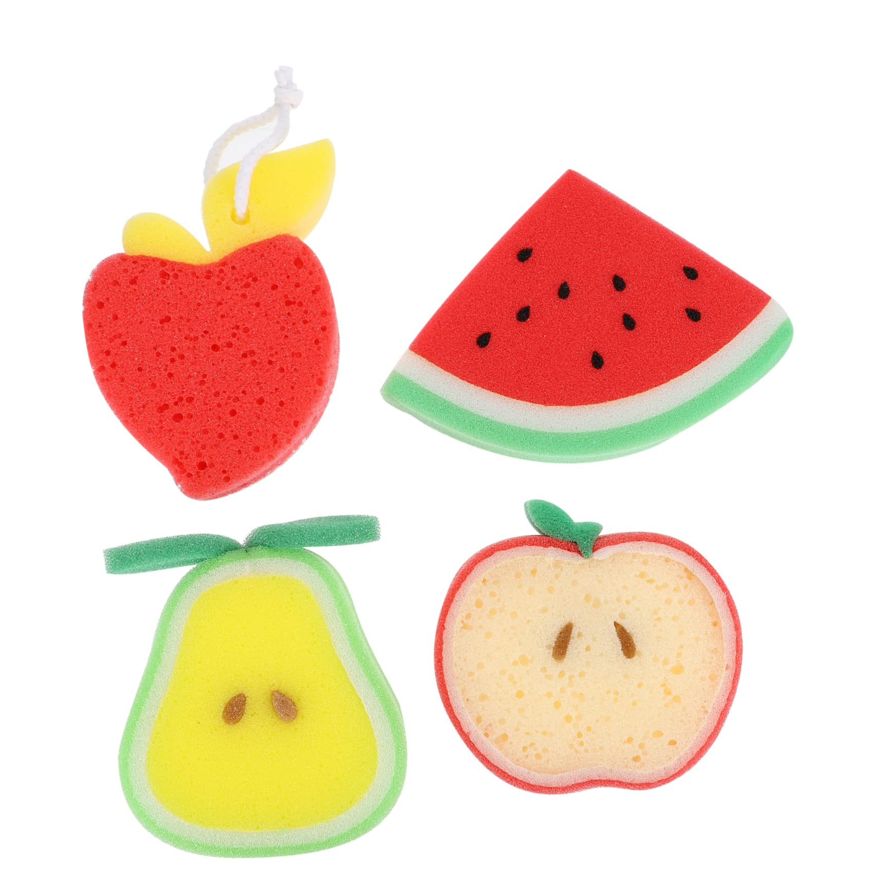 Healeved 4pcs Child Bath Fruit Shower Ball Body Scrub Sponge Fruit Shower Bath Ball Bath Loofah Mesh Shower Ball Bath Scrubber Baby Mesh Sponge Bath Sponge Kids Body Wash Pu Sponge Material 1 Count (Pack of 1)