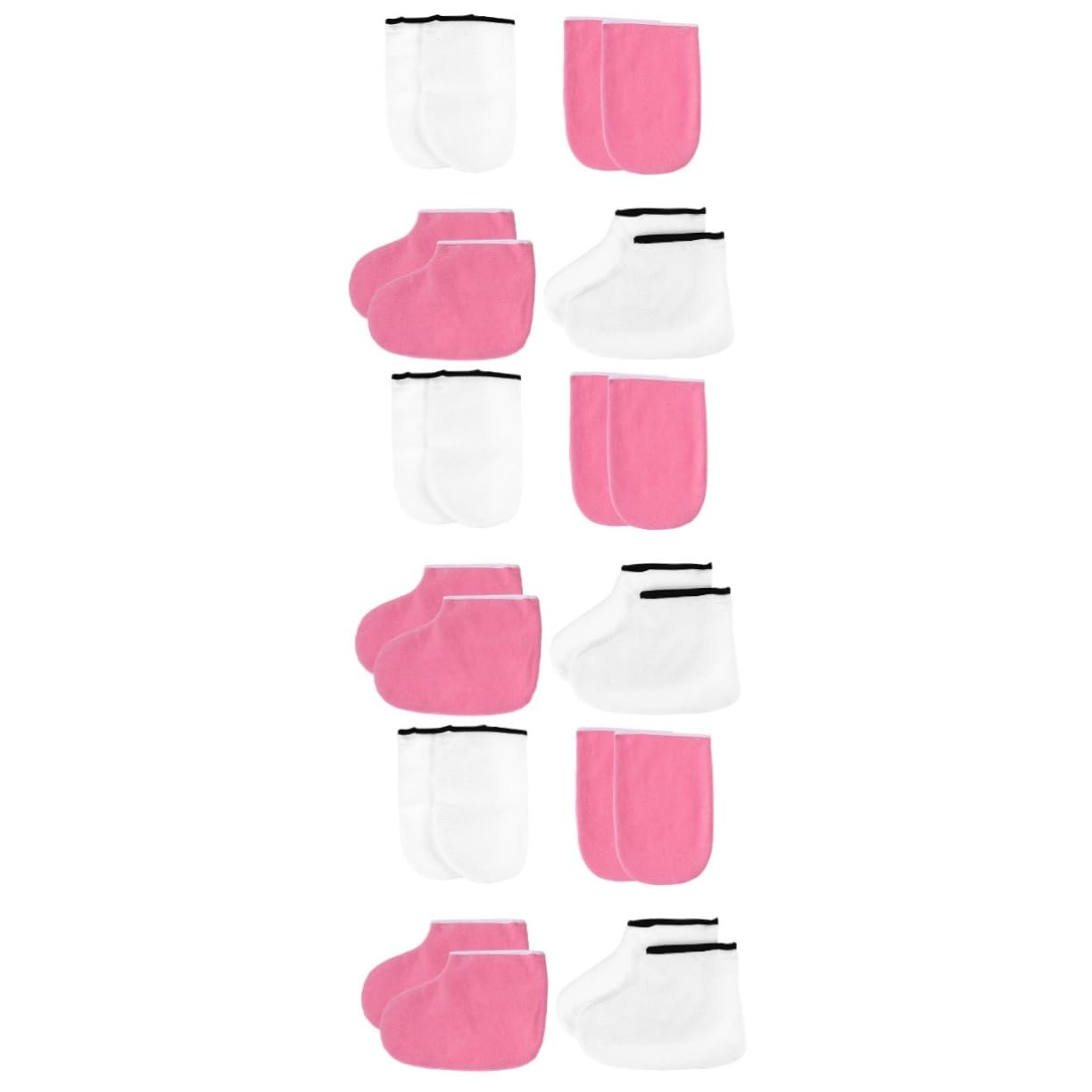 Package List 6 x pairs of gloves 6 x pairs of socks Features -Size glove: About 25.00X16.00cm/9.82X6 Wax Heat Sock. -Color: White, pink Removing Covers -Material: Polyester, cotton Heat Wax Hand Cover -Size foot cover: About 25.00X20.00cm/9.82X7 paraffin wax gloves. -Well-designed, you can adjust the tightness according to the size of the hand circumference and foot circumference Hand Cover. -An important accessory for wax , make the wax better absorbed Paraffin Gloves. -The gloves and socks are made of excellent materials, which does not fade, no loose thread, and is easy to clean paraffin wax bath gloves. -Used with beauty wax, it can be used for hand and foot care and maintenance Foot SPA Sock. -The inner material is made of premium polyester materials, easy to take off and clean, and the moisturizing effect is better SPA Gloves. Goods Description SPA Tool Are you suffering from , cracked skin, skin peeling, rough skin on your hands and feet? A simple paraffin treatment or other skin care for your hands and feet would make a huge difference! The mitts and socks are well-made of cloth, soft, comfortable and durable