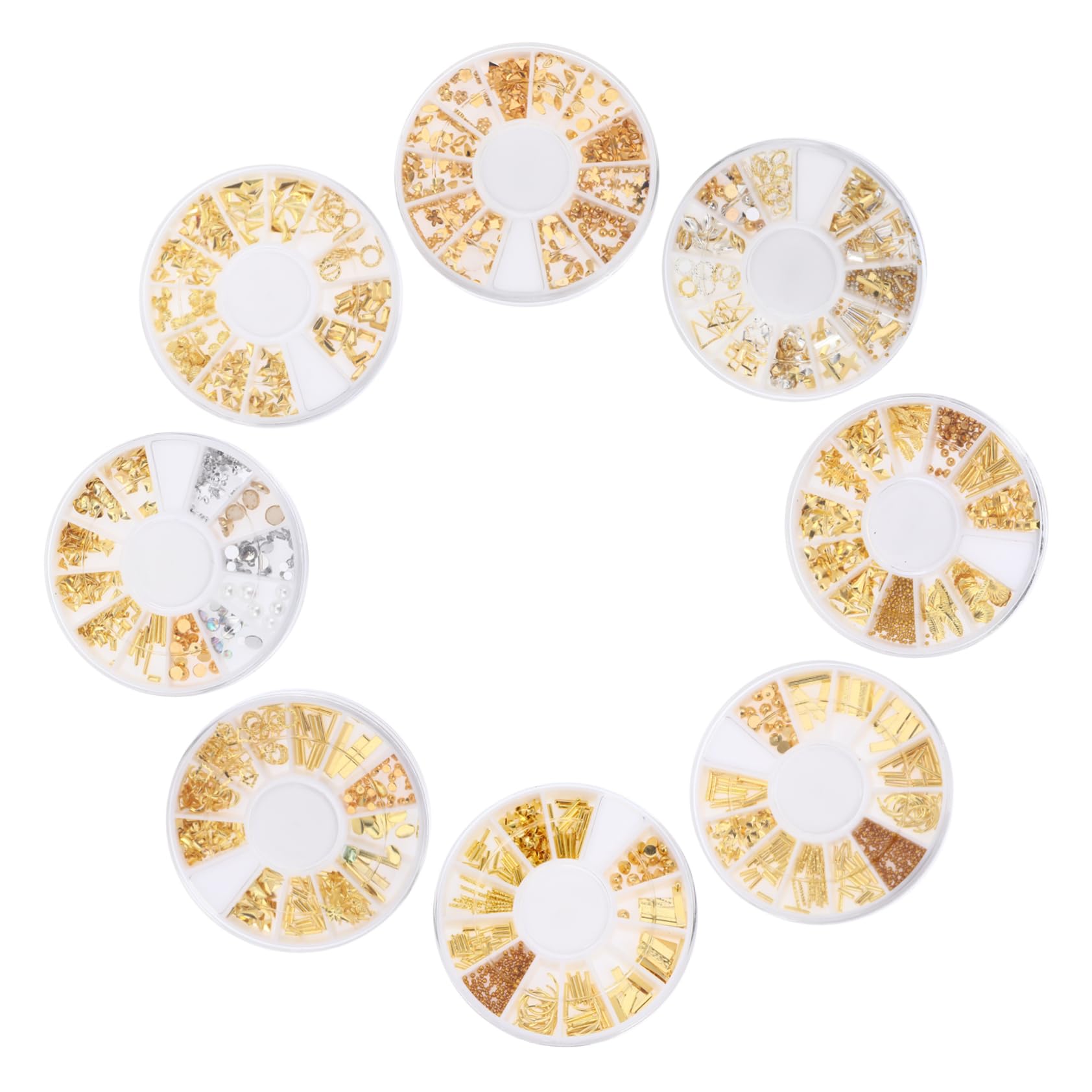 Package Include 8 Boxes x Nail Decorations (Assorted Style) Features - Material: Alloy + Plastic Manicure DIY Decor. - Color: Golden Nail Art Studs. - Size: 6.00X6.00X1.00 cm/ 2.36X2.36X0.39 inch Nail Studs. - Fabulous effect of the nail decoration will make your nail art more attractive and elegant DIY Accessories for Nail. - Beautiful and shinning color will of style,meet with all the fashion Nail Art Supplies. - It is fun to DIY nail art with your family or friends when family gathering, enjoy your own unique nails and good time Rivet Nail Art Decor. - Made of , no harm, not easy to break, durable for long term use Nail Accessory. - Quick to apply, just a few seconds, you can get the fine nail art design, suitable for both beginners or professional nail salons Manicures Accessories. Goods Description nail sequins Exquisite and beautiful, designed with chic and beautiful colors, look great on your nail, make you look more beautiful and elegant.moon nail studs These nail decal studs with creative shapes, can be used to design your own nail art, highlight, etc.moon decor Great combination for you to DIY nail decorationsNail polish accessories-- can be used to make special embellishment for your bag, body, phone, dress, craft, shoes, etc. Nail art decoration-- fabulous effect of the nail decoration will make your nail art more attractive and elegant. Nail decoration-- DIY nail art at home without going to a beauty salon, very convenient for use. Metal nail studs-- DIY , it allow you to enjoy the fun of nail art. Rivet nail-- quick to apply, just a few seconds, you can get the fine nail art design, suitable for both beginners or professional nail salons.
