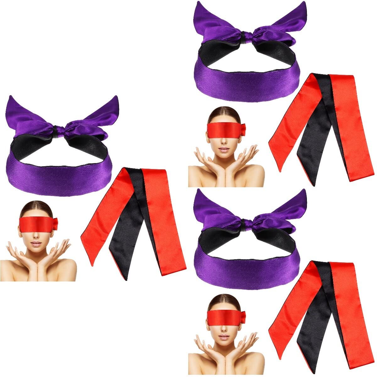 Description eye masks Features -Color: Black red, black purple -Material: Satin -Size: About 150.00X7.50cm(58.95X2.95in) Package Including 6 x Satin Eye Mask