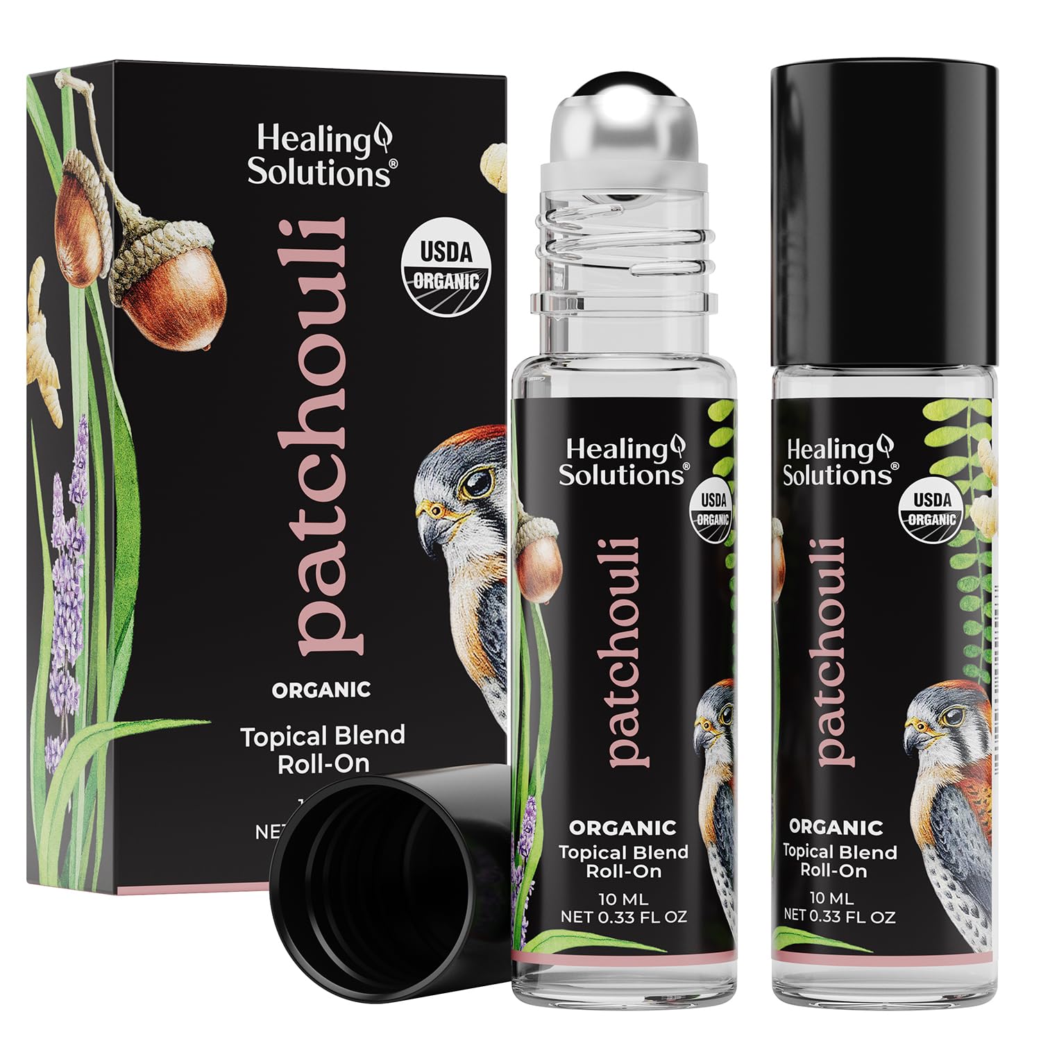 Healing Solutions (2 Pack) USDA Certified Organic Patchouli Essential Oil Roll On Set Patchouli Body & Skin Roller Perfume for Adults Patchouli 0.33 Fl Oz (Pack of 2)