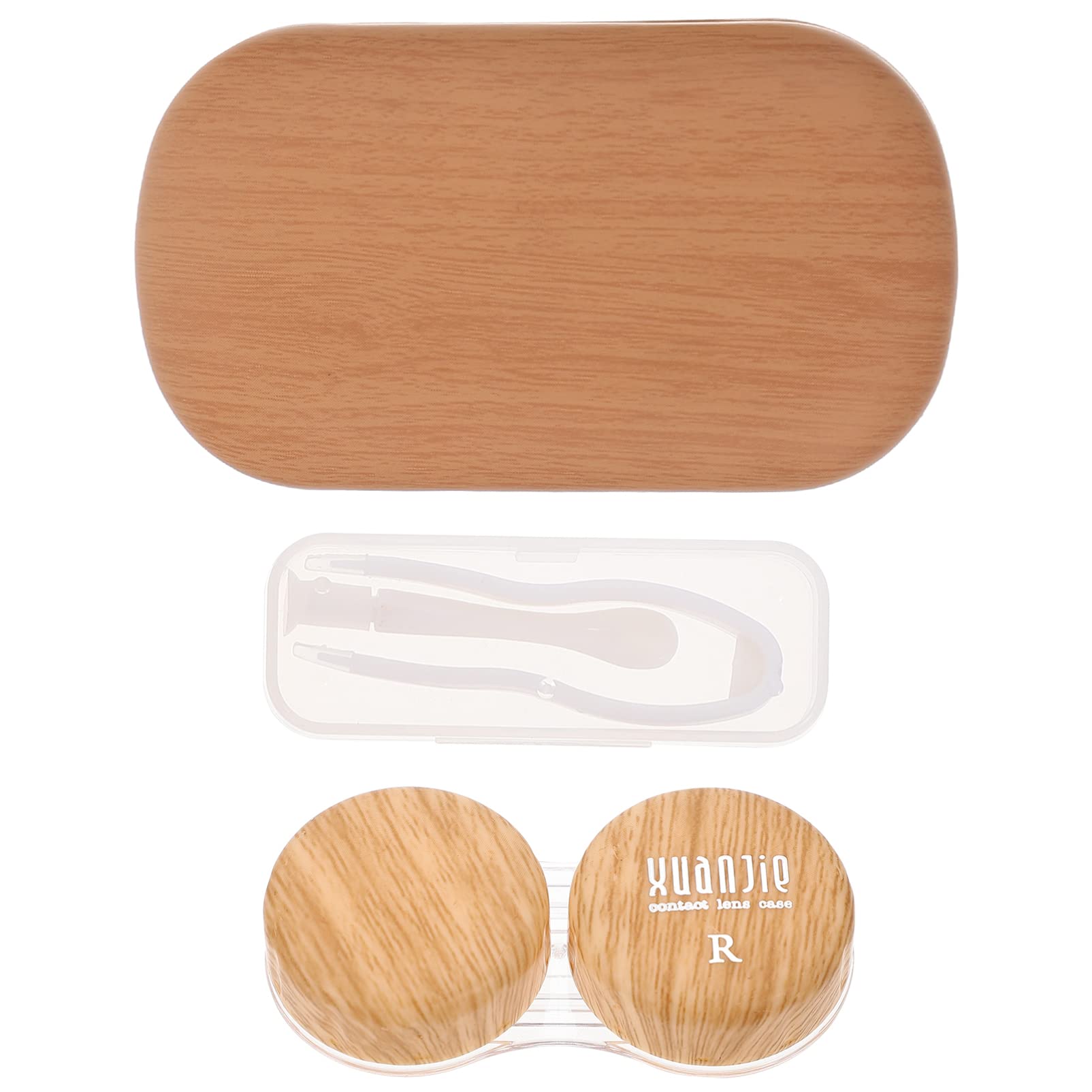 portable objective work, exquisite workmanship and materials for quality, ensure a long service life and perfect details.Offer comprehensive protection of your glasses, protect your glow from vibrations and scratches and offer excellent protection against scratches, dirt, effects and other daily.Both theUEre Box and the inner double box are made of wooden grain patterns with a smooth feeling.Share with your friend and family as a wonderful contacts.You can use it with trust.The controls of the contact bullet, which can be assumed, you can assume wherever you need it.Wood grain contact lens cover compact eye contact case portable eyes contact lens remover tool with mirror for teenagers mDchen women travel carry.