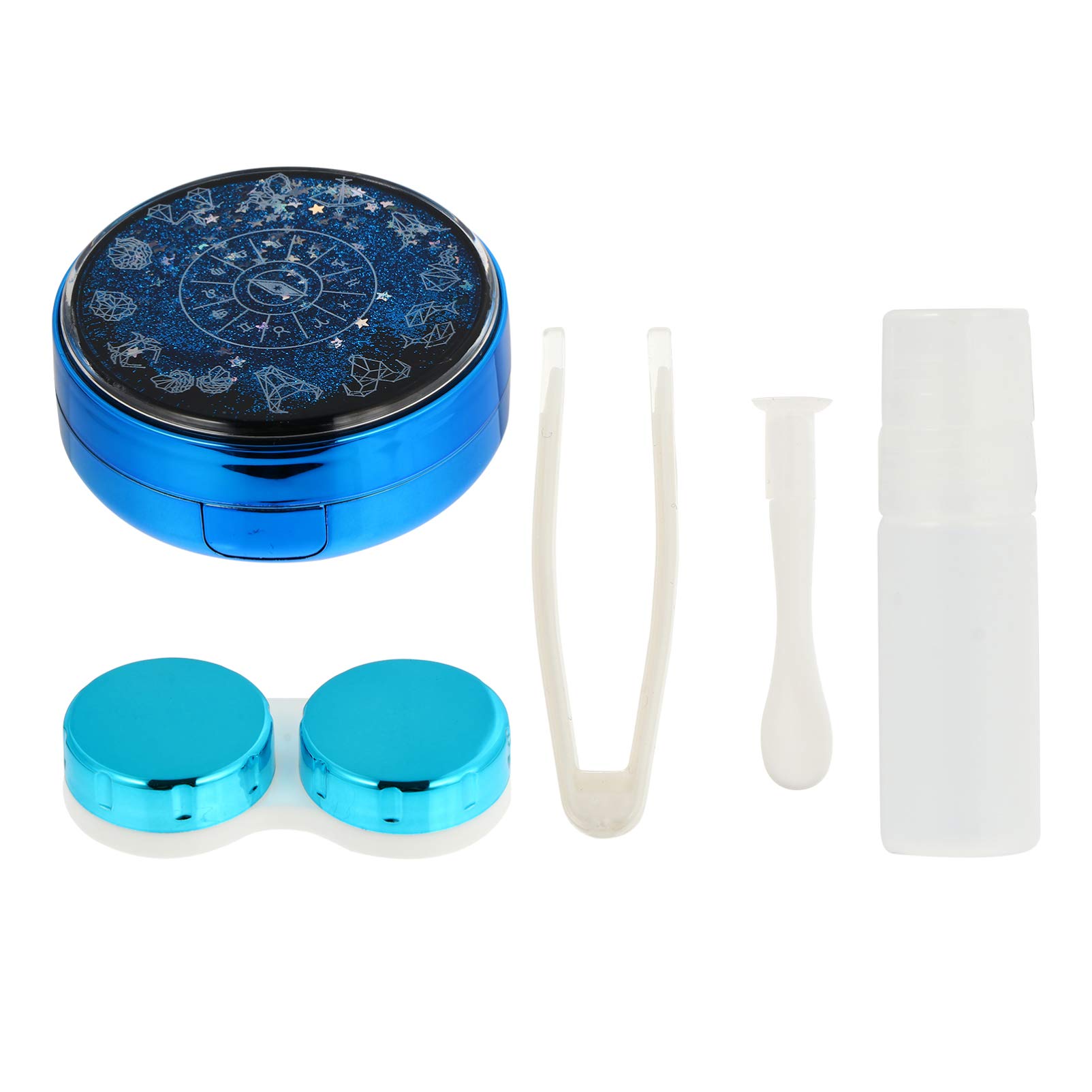 HEALLILY Lens Travel Case Portable Lens Kit Eye Care Kit Holder Mirror Box Bottle Tweezers Container Holder Blue