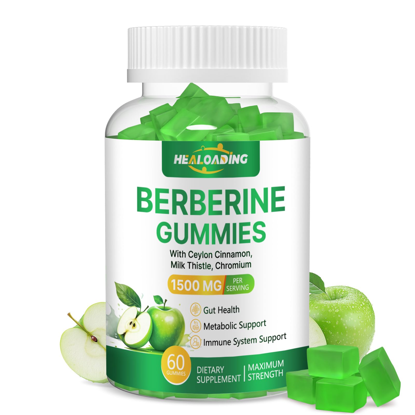 HEALOADING Berberine Supplement with Ceylon Cinnamon: Berberine Gummies with Milk Thistle Chromium for Metabolism Energy Gut Health Fasting & Body Mass Control