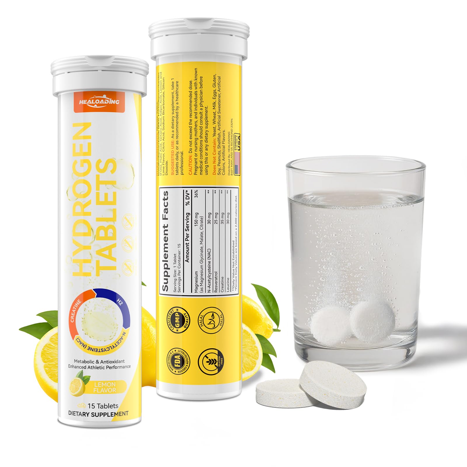 No Additives, Vegan Non-GMO:HEALOADING H2 tablets made in a GMP-certified facility, formulated with clean, quality ingredients – free from artificial additives, gluten, or animal products. Effervescent Formula for Easy Use: The portable tube is perfect for travel, gym, office, or outdoor activities, ensuring you never miss your daily antioxidant boost. Powerful Antioxidant Support: Molecular hydrogen is known for its selective antioxidant properties. Our tablets are designed to release high concentrations of hydrogen into your water, which may help neutralize free radicals and support your overall wellness and active lifestyle. Enhanced with Magnesium: We've added highly bioavailable Magnesium to every tablet. Not only do you get hydrogen-rich water, but you also get the added benefit of Magnesium, which supports muscle function and energy production. Instant Hydrogen Rich Water: Simply drop one tablet into a glass of water (8-12oz), and it quickly dissolves into hydrogen-rich water within minutes. Enjoy the potential antioxidant benefits anytime, anywhere, without the need for expensive machines or plastic bottles.