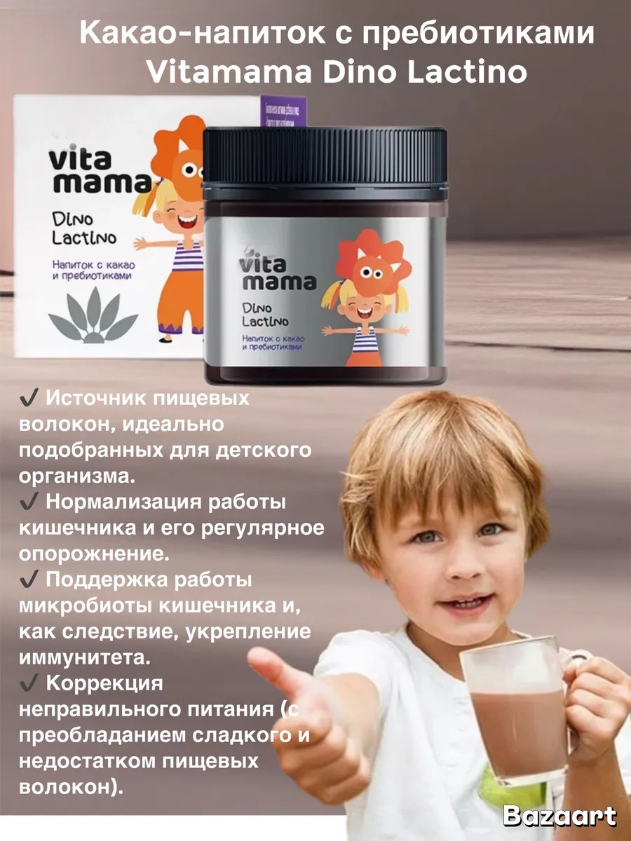 Предложите в качестве напитка новое какао Dino Lactino от Vitamama – подарите отличное начало дня и 100% пользу тому, кто дороже всех!