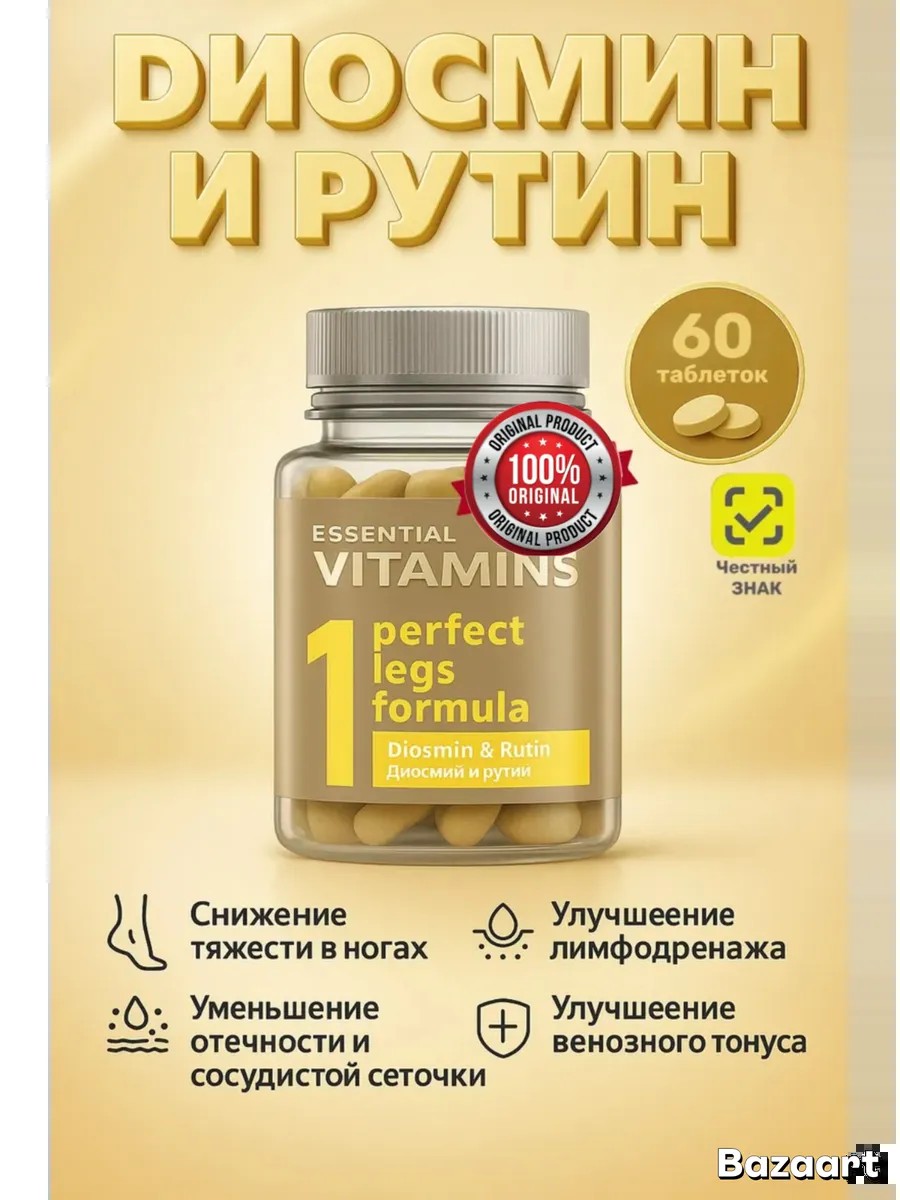A natural venotonic based on diosmin and rutin to prevent lymph flow and blood circulation disorders in the legs.