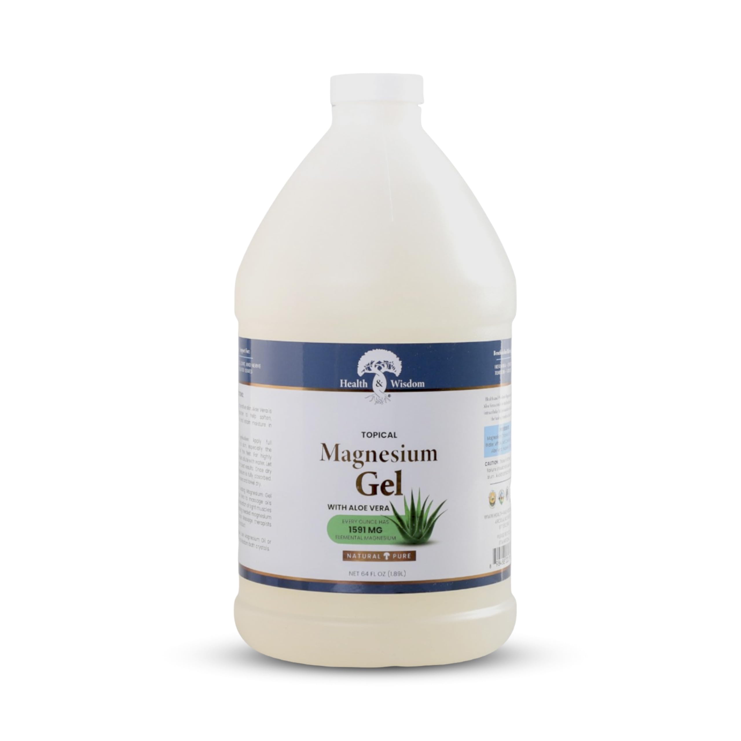 Health and Wisdom Pure Magnesium Gel with Seaweed Extract and Aloe Vera - Topical Muscle & Joint Relief- Natural and Pure Skin & Scalp Moisturizing - Enhanced Absorption - 64 Fl oz With Seaweed Extract and Aloe Vera 64 Fl O
